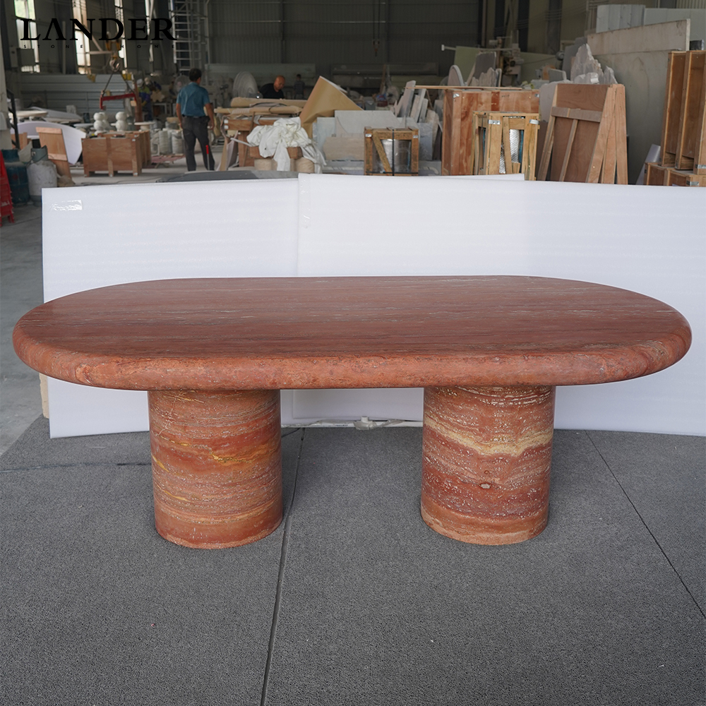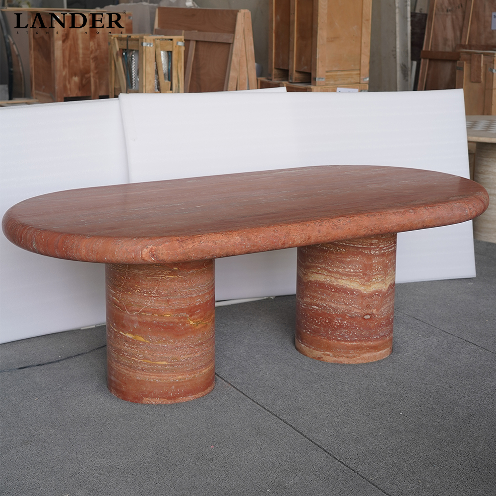 2.2M Red Travertine Oval Marble Dining Table