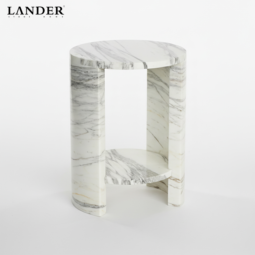 The Arabescato Round Marble Side Table embodies Italian refinement, crafted from genuine Arabescato stone with flowing grey veining and a smooth, polished finish. Its balanced circular silhouette suits both modern and traditional interiors—ideal beside a sofa, lounge chair, or bed—while the solid marble top provides sturdy, long-lasting performance. Each piece is uniquely patterned, delivering a timeless, luxurious accent to any space.