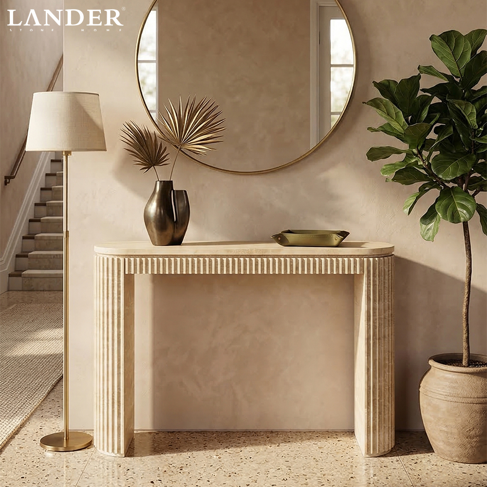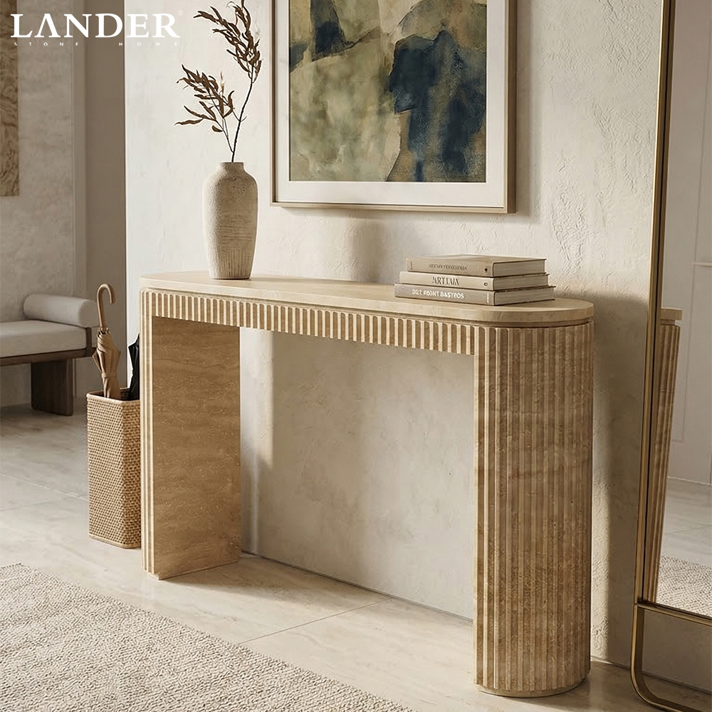 Durable Craftsmanship: Crafted from high-quality travertine marble, this console table provides lasting strength and stability while serving as a functional centerpiece for your home.