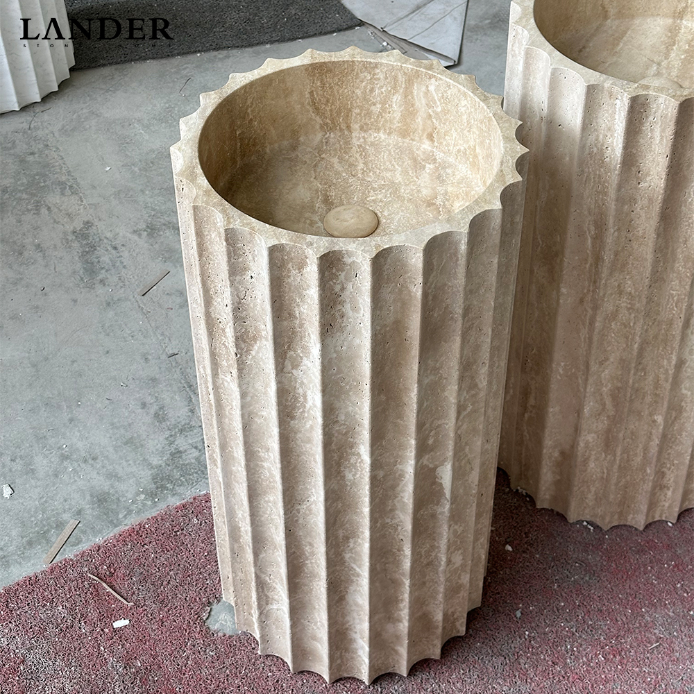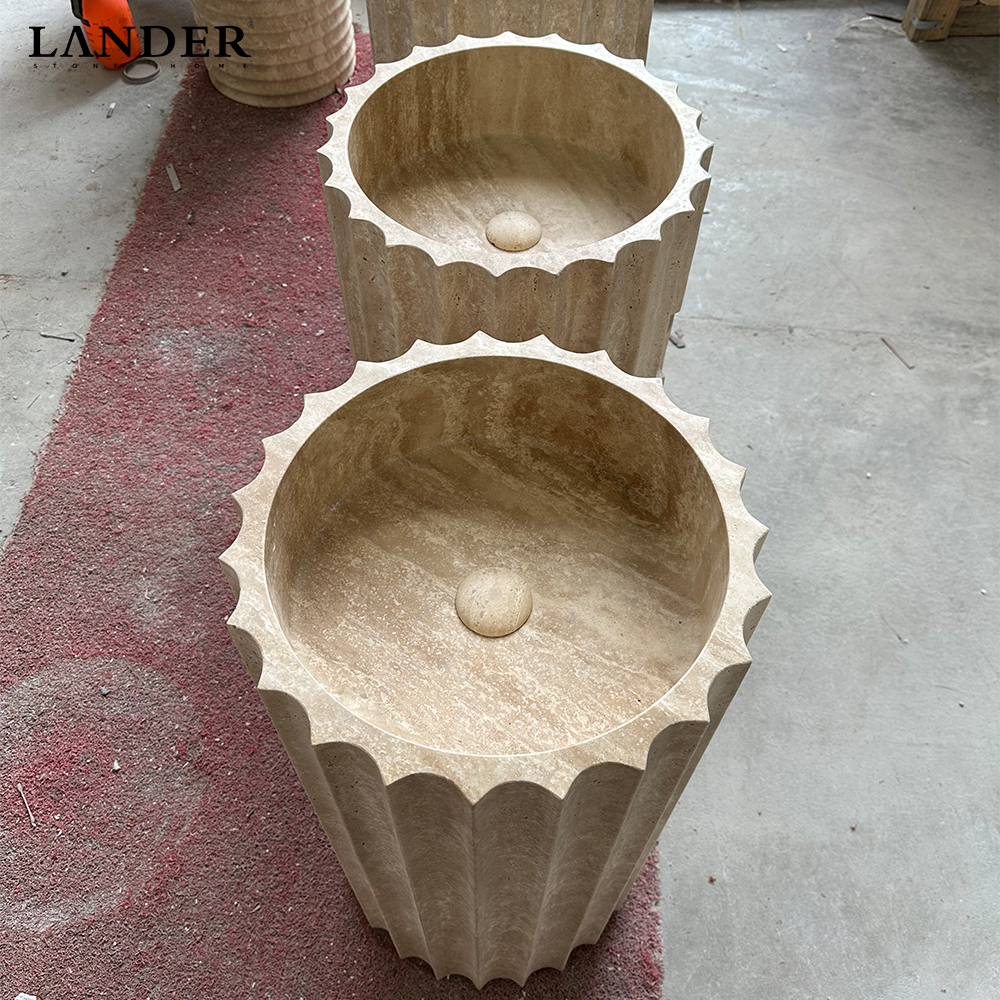 The Beige Travertine Marble Sink with Inner Circle Groove combines the natural beauty of beige travertine marble with a functional, modern design. The smooth, polished marble surface is highlighted by an elegant inner circle groove, offering both aesthetic appeal and practicality. Its warm, neutral tones and subtle texture enhance any bathroom or powder room, while the durable material ensures long-lasting performance. This sink’s unique design not only adds sophistication to your space but also provides a practical solution for everyday use, making it a perfect addition to both contemporary and traditional interiors.