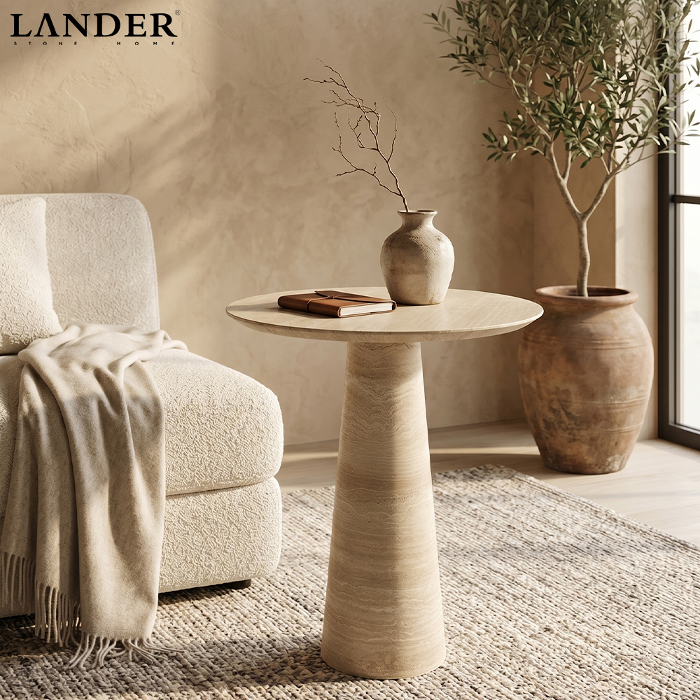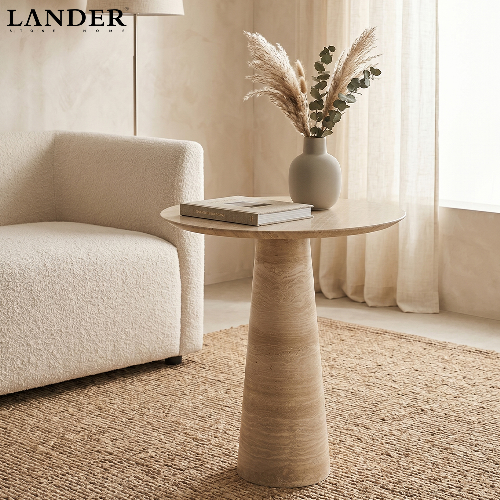 Crafted from natural beige travertine, this round marble coffee table showcases timeless elegance and earthy warmth. Its smooth surface and clean silhouette make it a versatile centerpiece for both modern and classic living spaces, adding organic charm effortlessly.