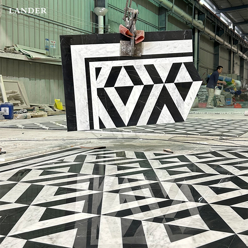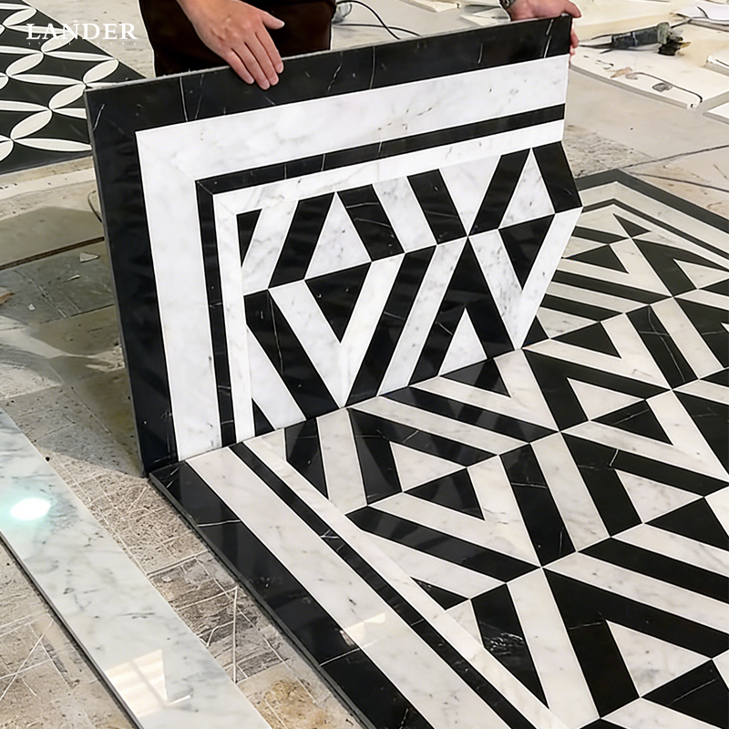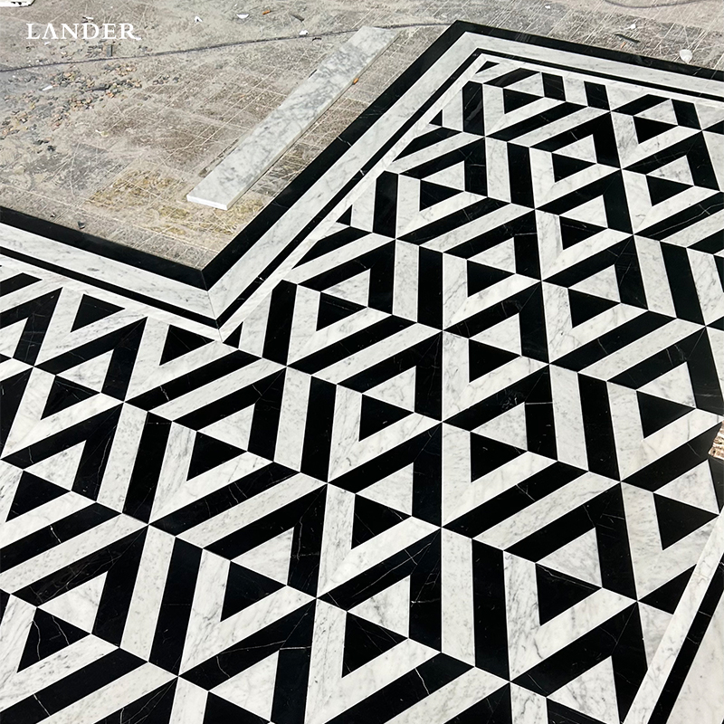 The Bianco Carrara and Nero Marquina Marble Parquet is a masterwork of geometric precision and high-contrast artistry. Combining the luminous white of Bianco Carrara with the deep obsidian of Nero Marquina, this parquet creates a mesmerizing 3D visual effect that adds depth and movement to any surface. Each piece is precision-cut for a flawless, seamless fit, delivering a bold architectural statement. Ideal for grand entryways, luxury residential living areas, and high-end commercial lobbies seeking a timeless yet avant-garde floor design.