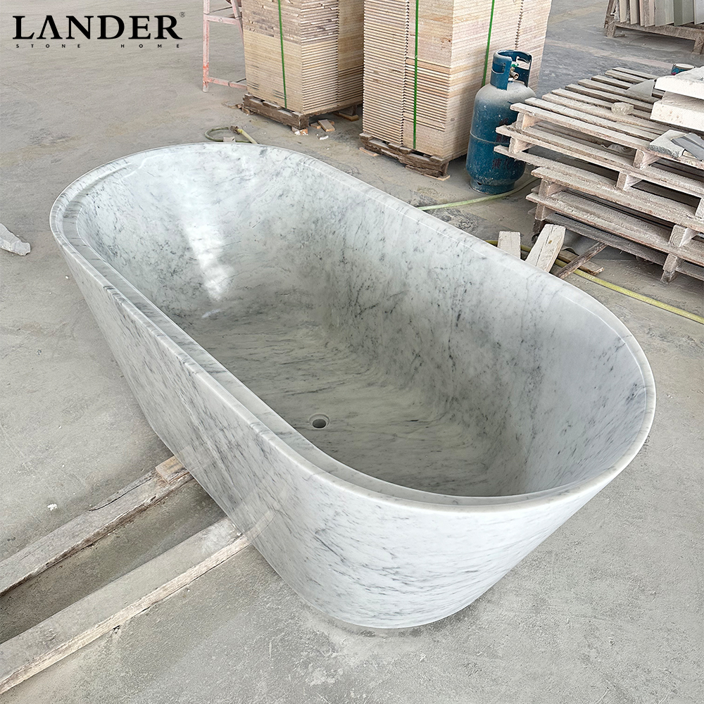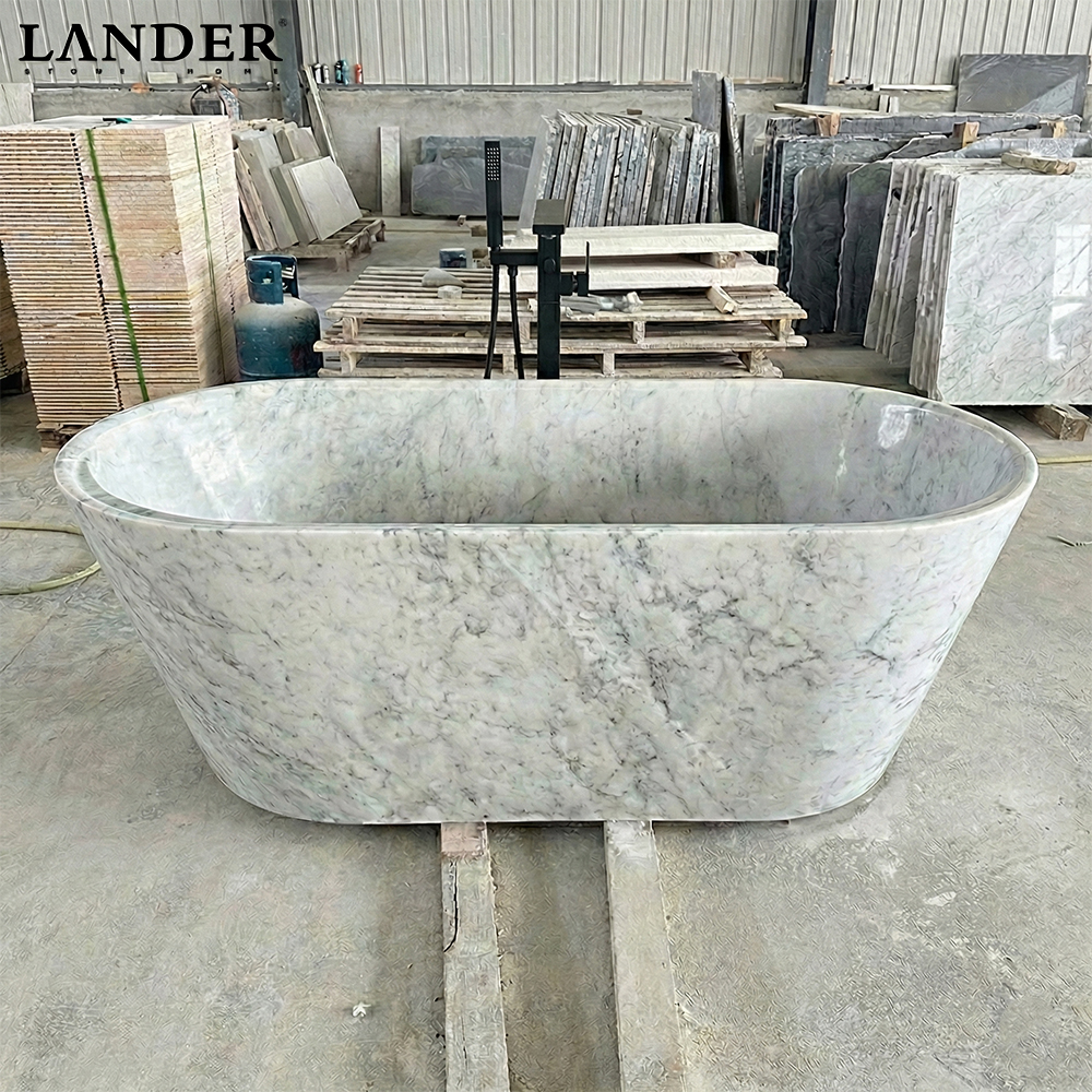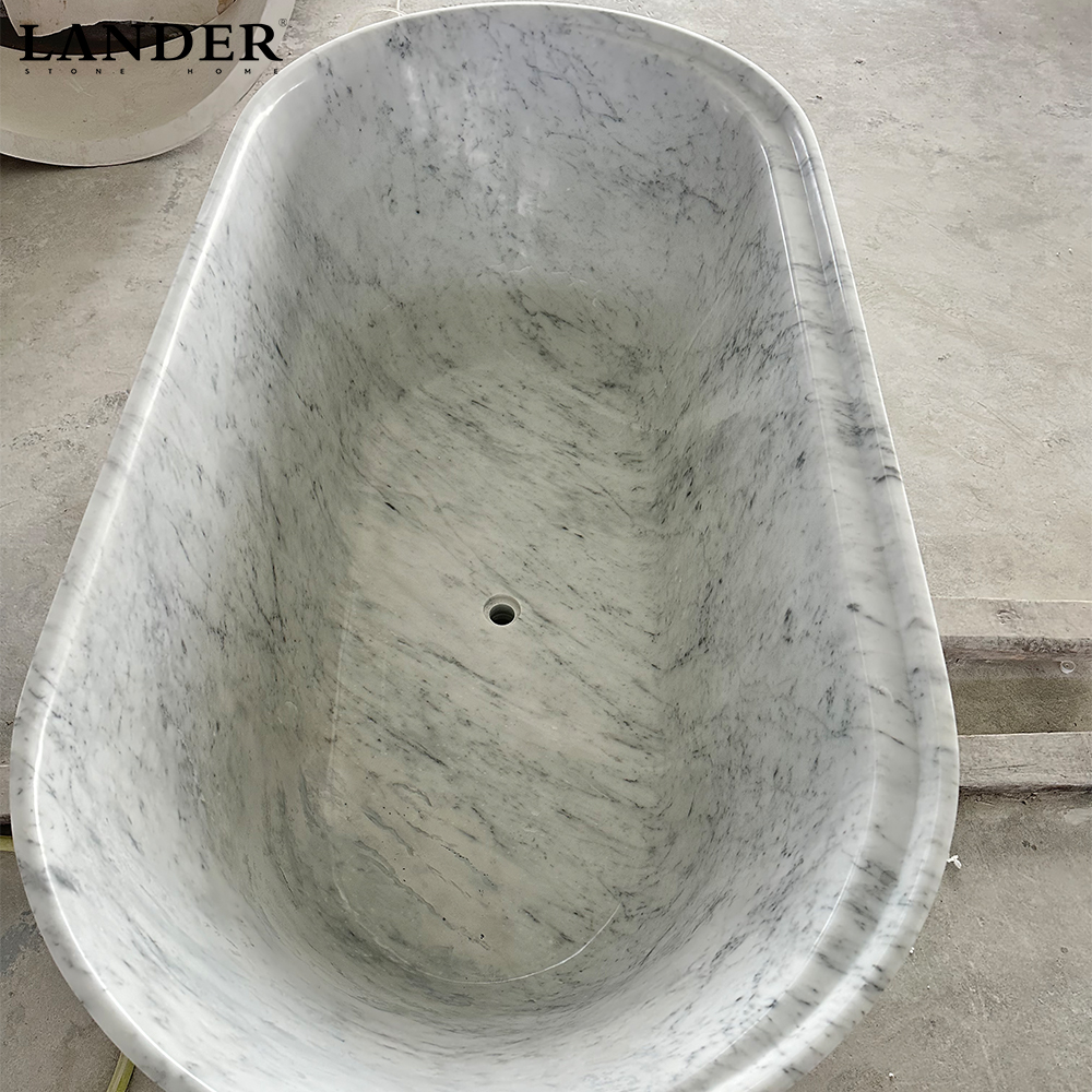 Iconic Bianco Carrara Marble: Showcases the world’s most prestigious marble, offering a sophisticated neutral palette and authentic natural veining that ensures every bathtub is an exclusive, one-of-a-kind functional sculpture.
