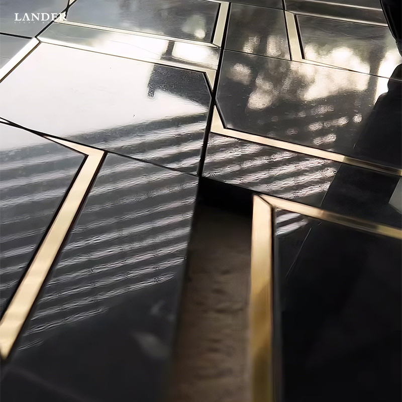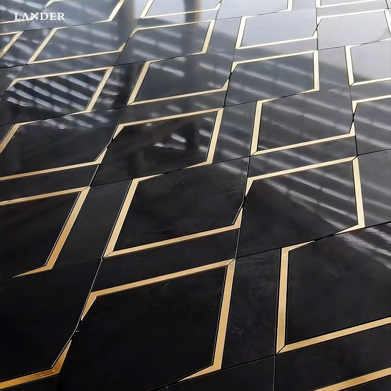 • Metallic Edge Definition: Precision-cut metal inlay outlines the geometric shapes, providing a polished, reflective border that highlights the pattern and adds glamorous depth.