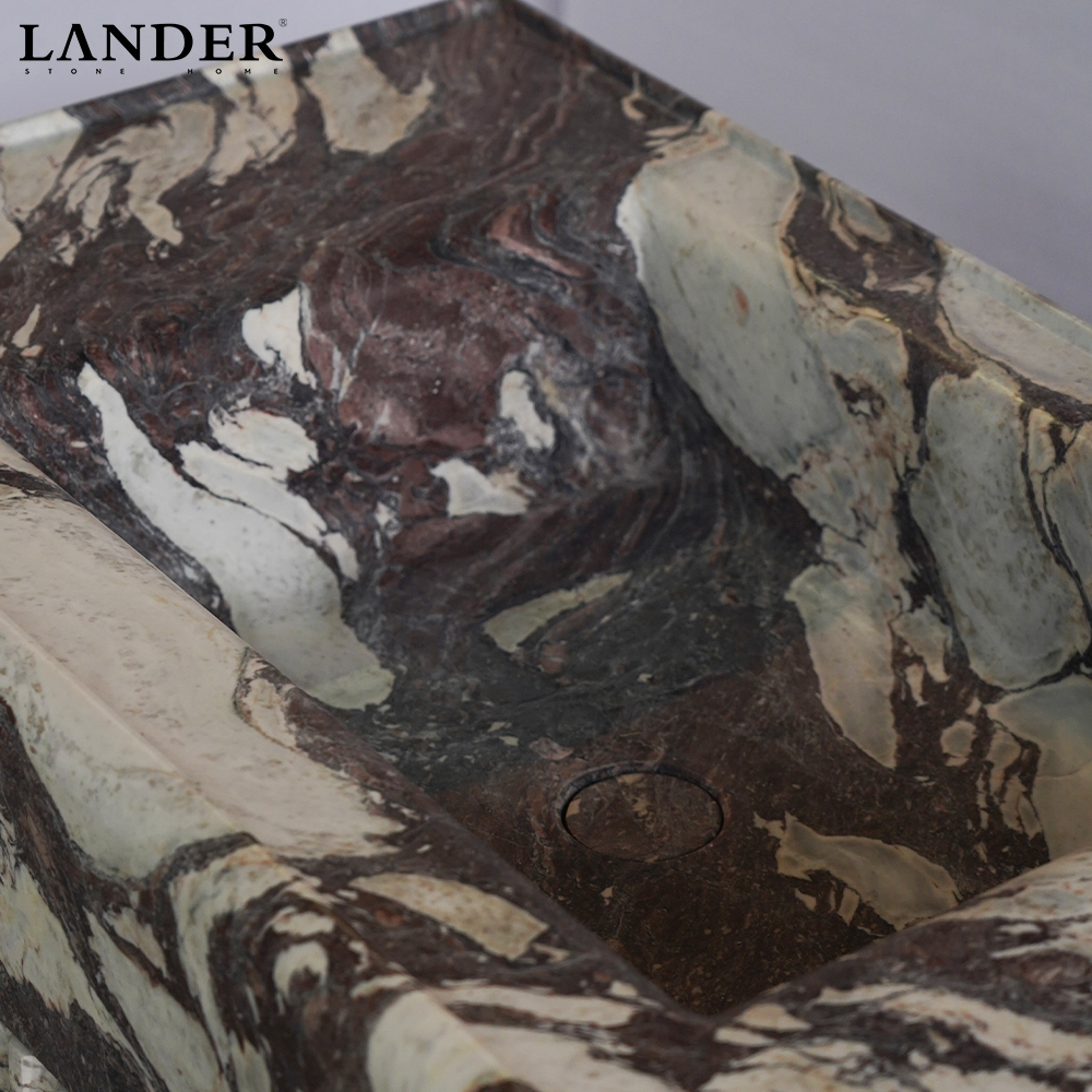 The Calacatta Viola Marble Sink Vanity is a masterpiece of high-contrast luxury, showcasing the dramatic, deep claret-colored veining and icy white background for which this iconic Italian stone is celebrated.