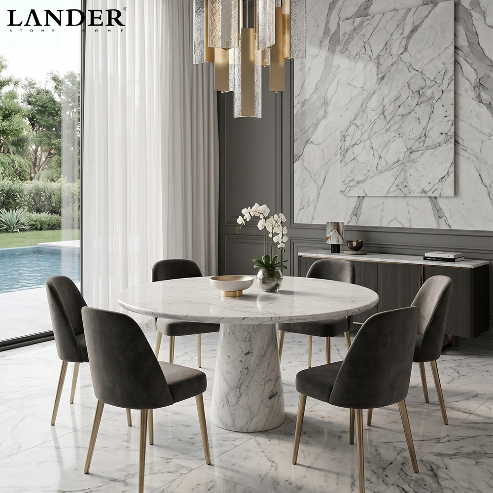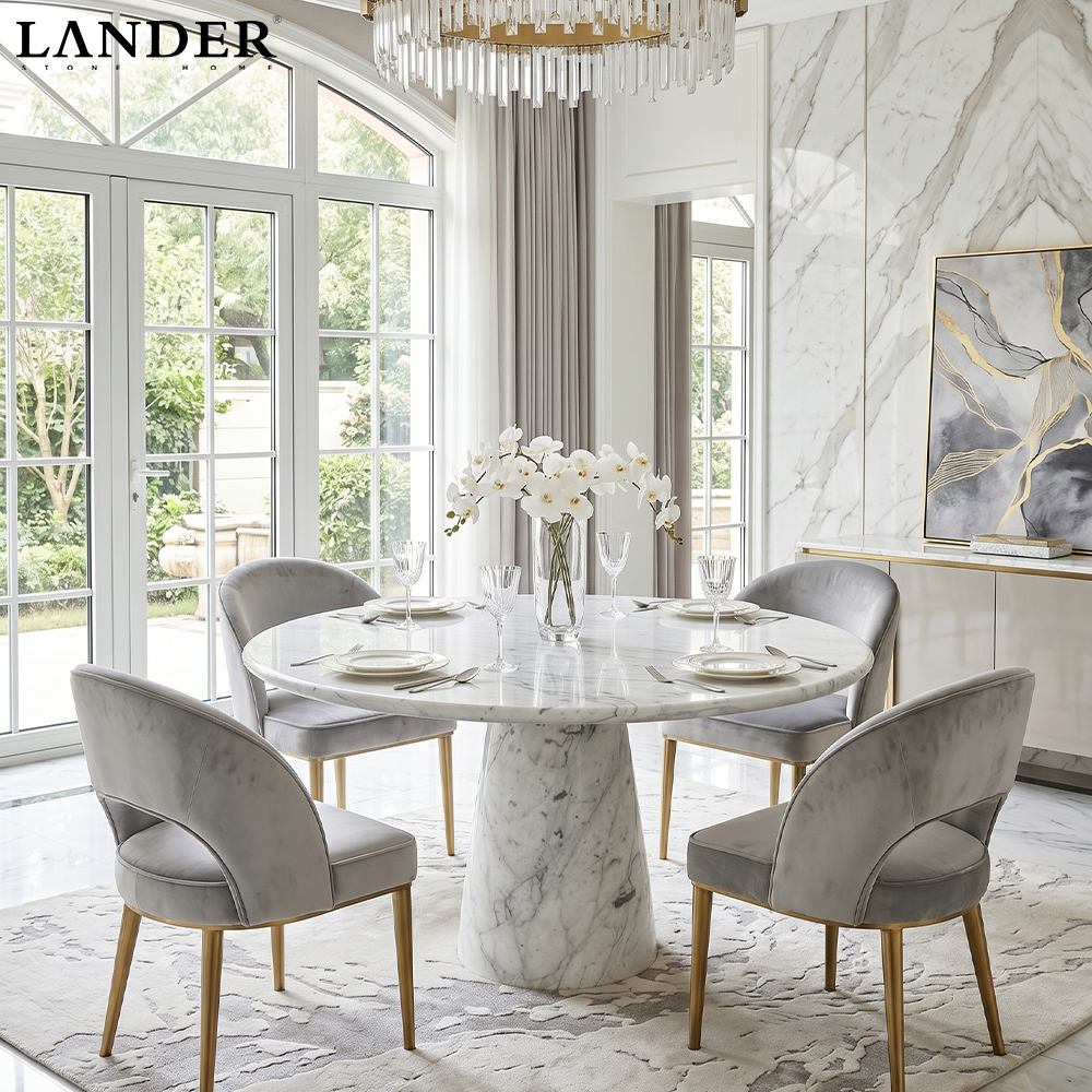 Durable Surface – Made from natural marble, it is heat-resistant and long-lasting, ideal for daily dining and entertaining.