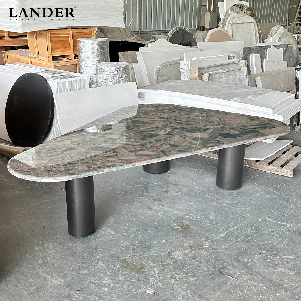 Artistic Natural Patterns: Each tabletop showcases unique, fluid crystalline veining and mineral layers, ensuring that your dining table is a one-of-a-kind piece of natural art.