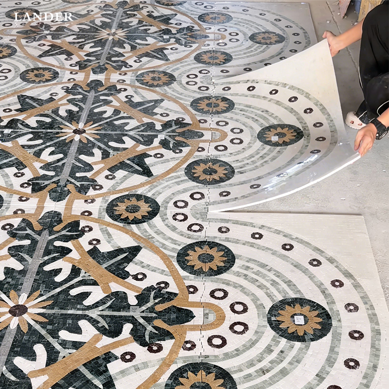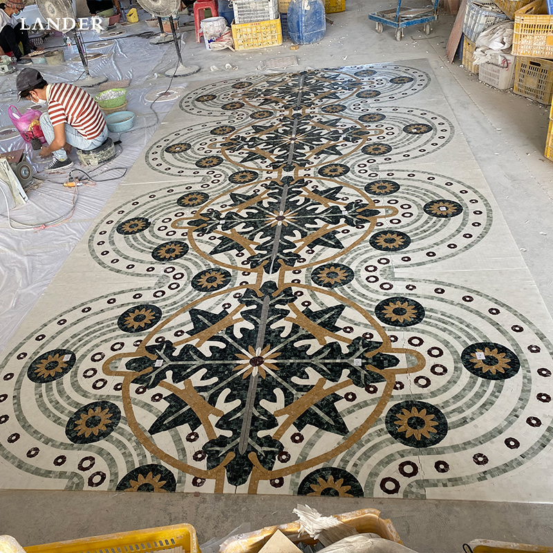 Intricate Waterjet Precision: Features complex, interlocking botanical and geometric patterns achieved through advanced waterjet technology for a seamless, museum-grade finish.