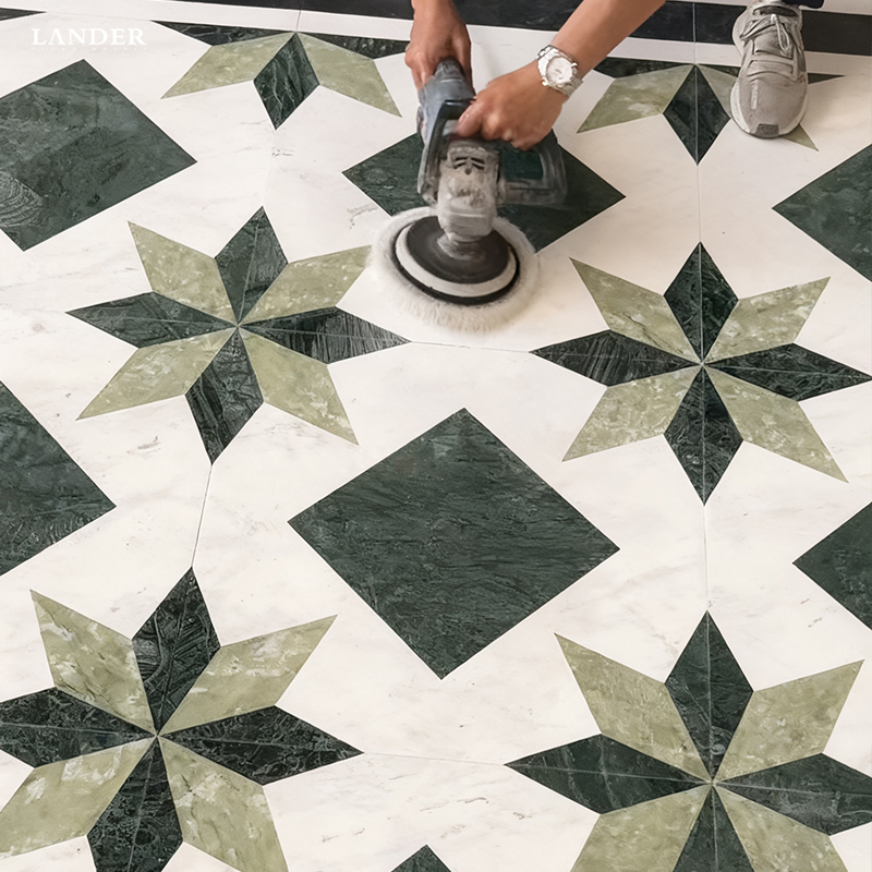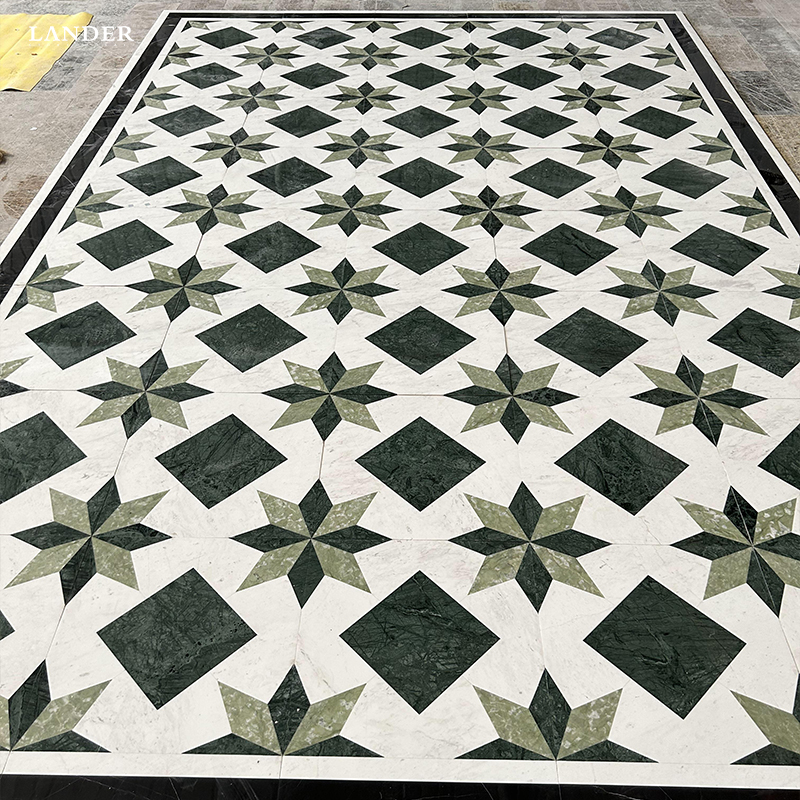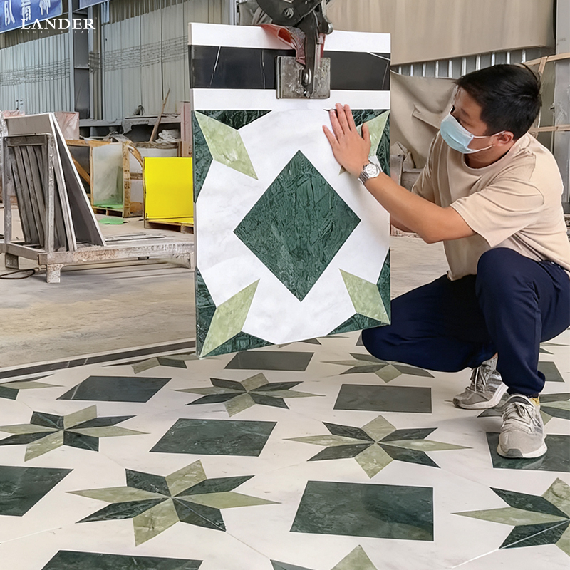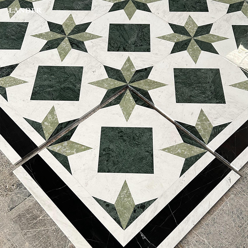 The Green White Marble Parquet blends cool white stone with elegant green veining in classic parquet patterns for a refined, heritage look. Precision-cut and available in herringbone or chevron layouts, each piece is hand-finished for crisp joints and smooth alignment. Crafted from durable natural marble, it’s suitable for floors and feature walls alike—offering long-lasting performance and easy upkeep when properly sealed. Ideal for foyers, living areas, boutique hotels, and luxe retail spaces.