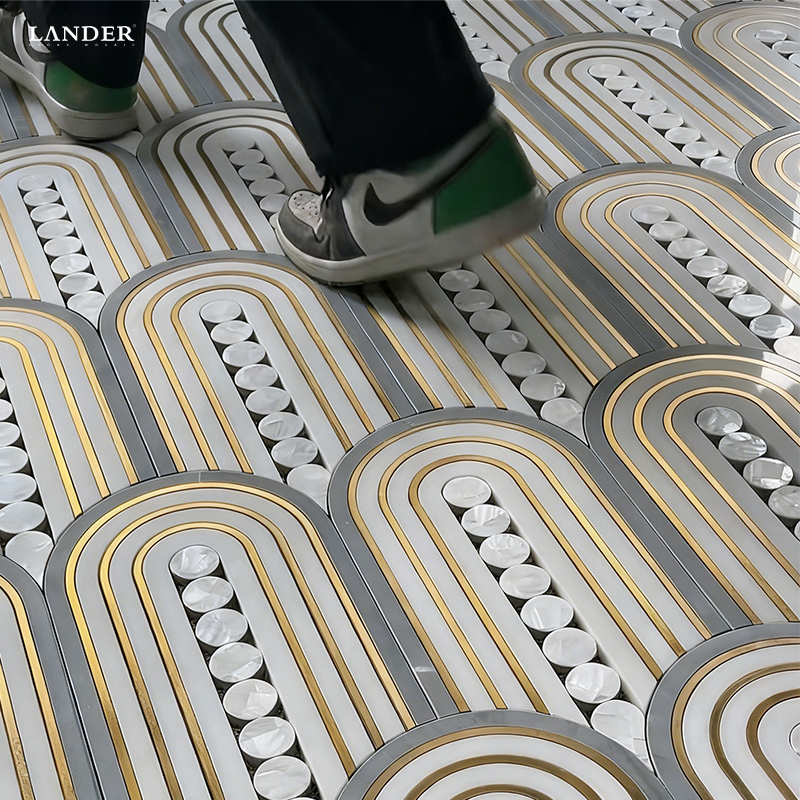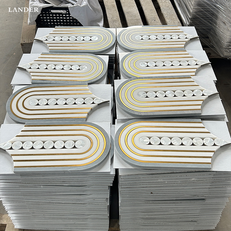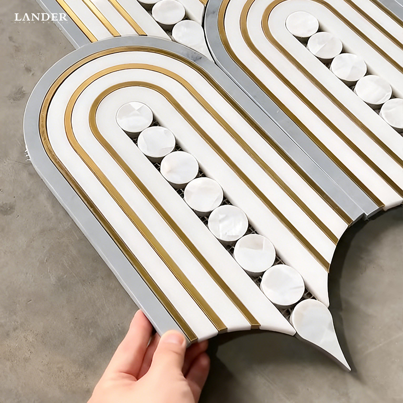 • Architectural Precision: Crafted with advanced Waterjet Technology to ensure every curved marble and metal piece fits together with flawless, architectural accuracy.