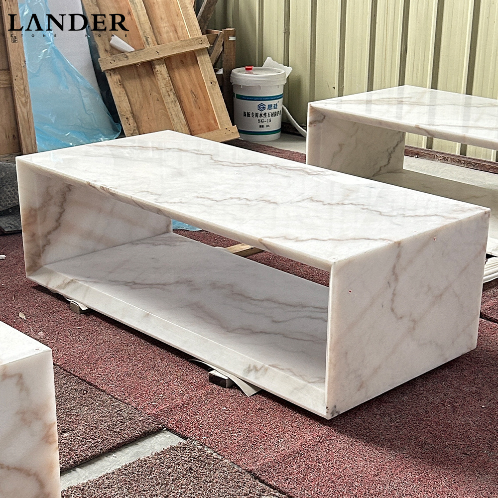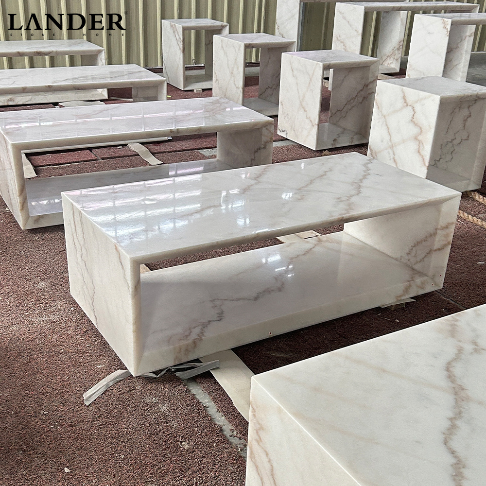 Guangxi White Marble Coffee Table Hollowed-out Lightweight Design