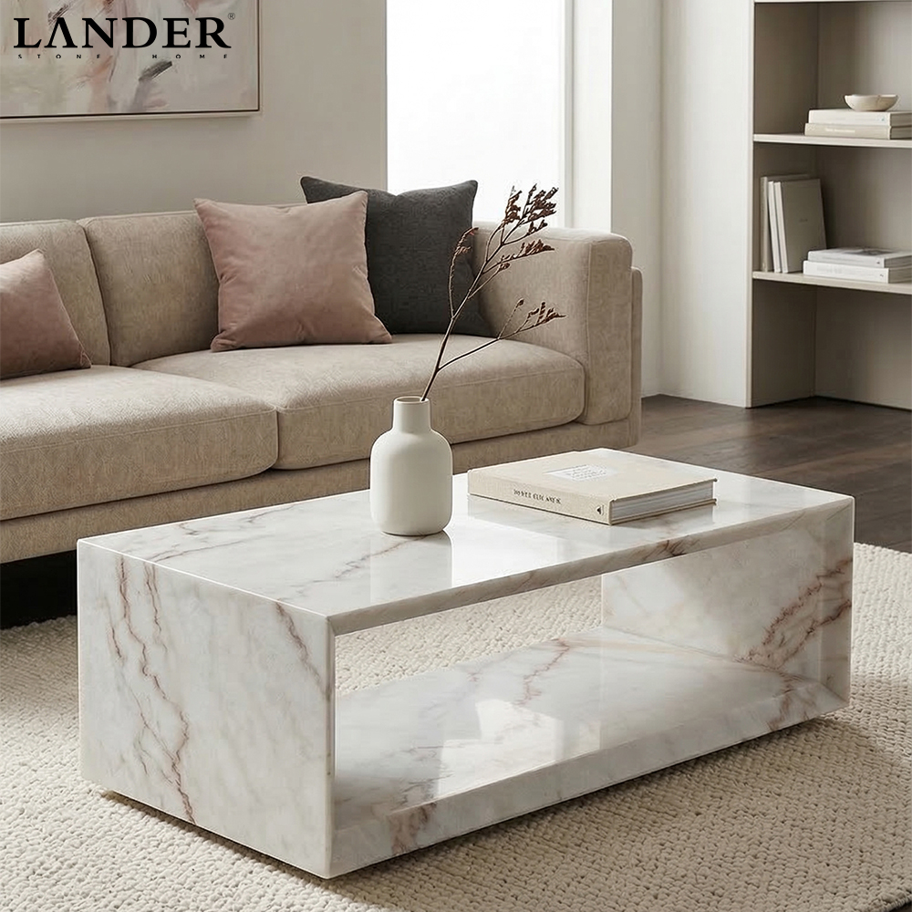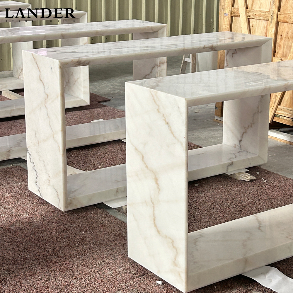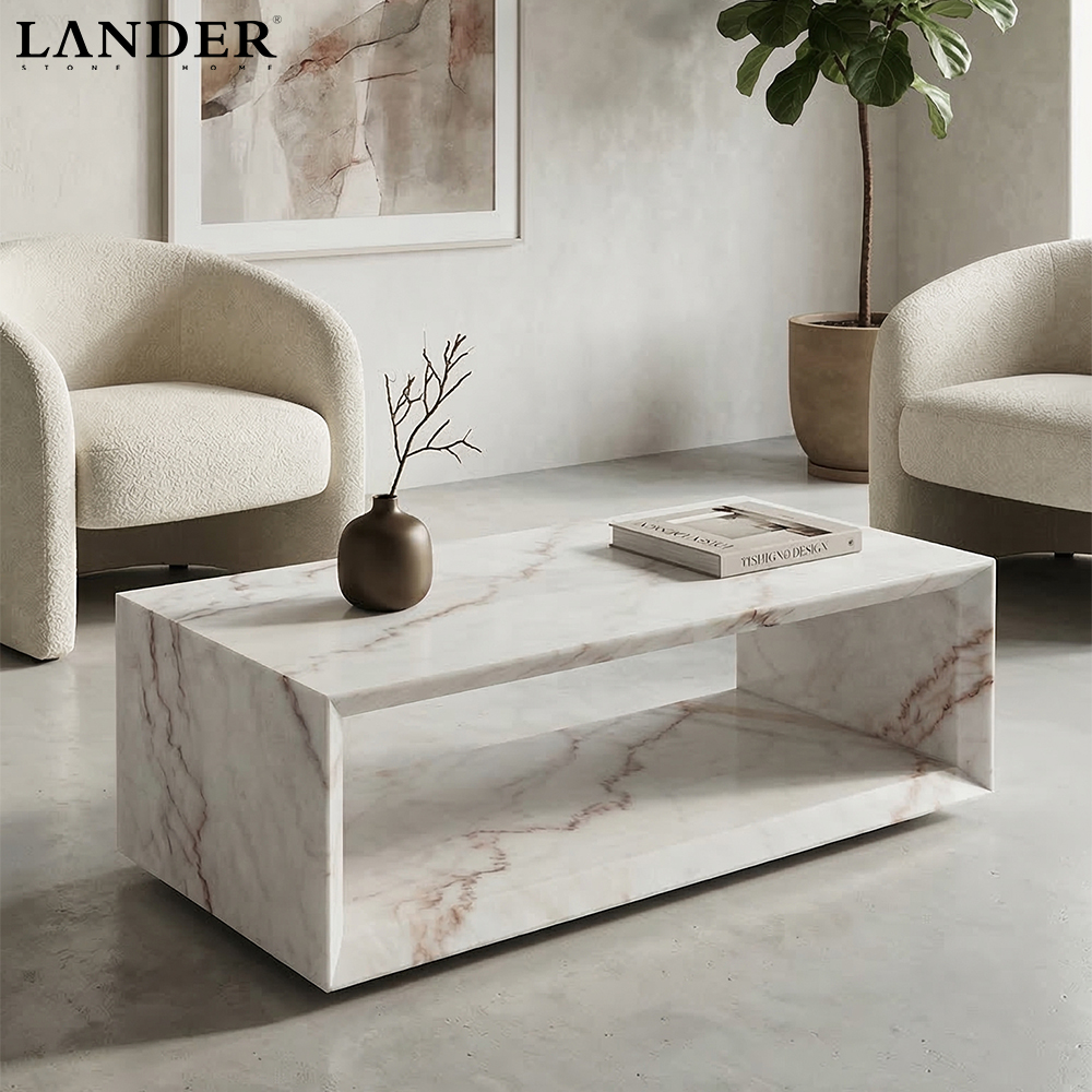 • Visual Lightweight Design: The substantial marble structure incorporates a clever hollowed-out center, creating an open shelf that provides both storage and a sophisticated sense of visual lightness.