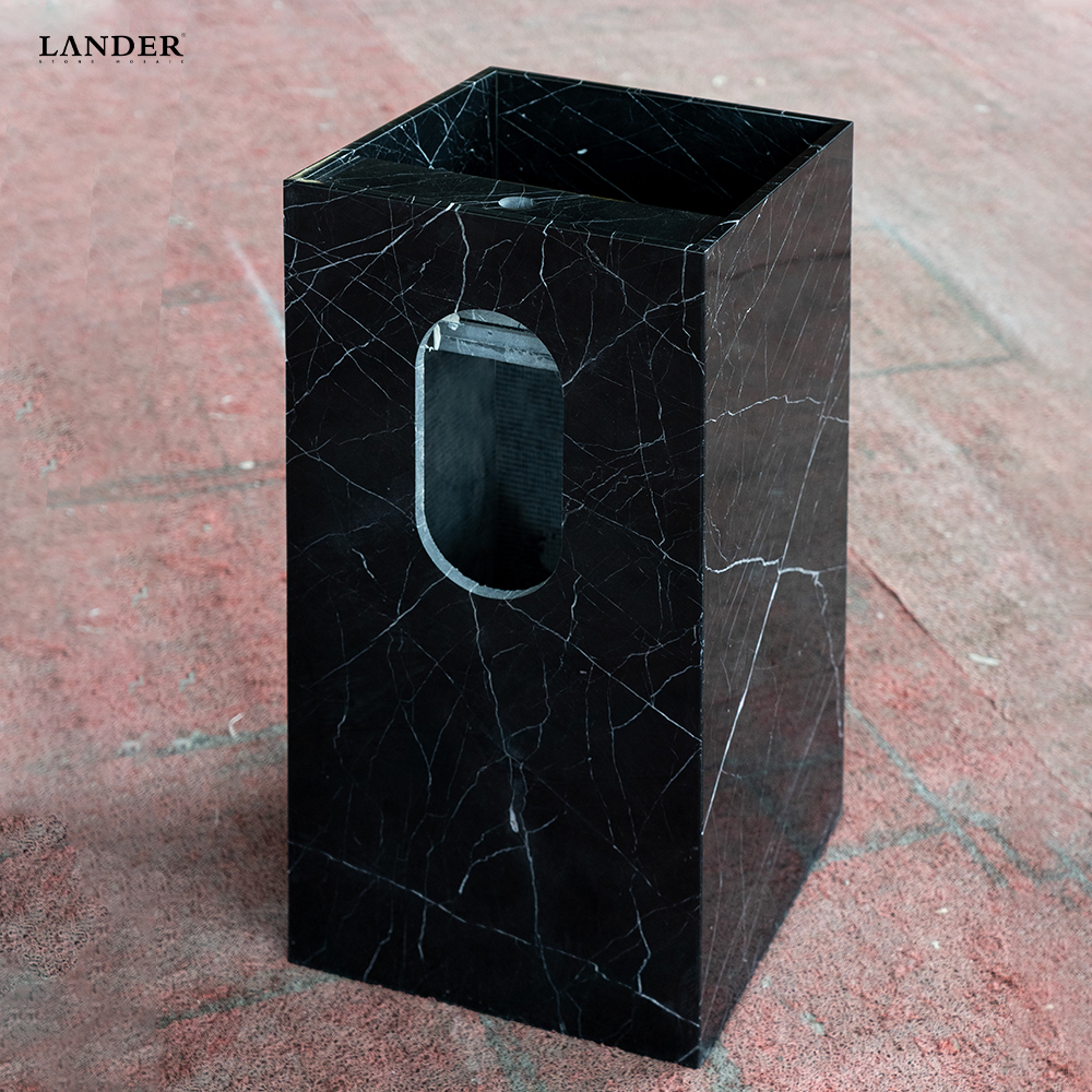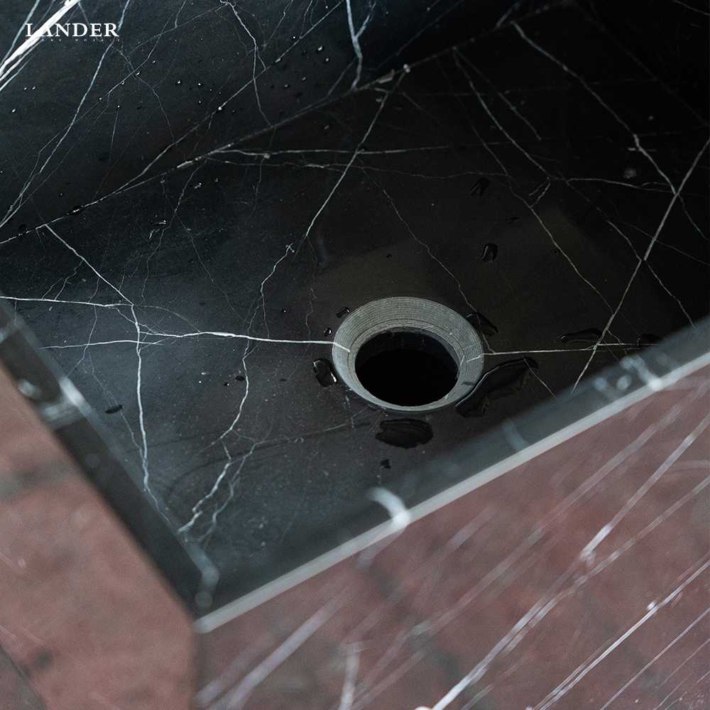 The Nero Marquina Black Marble Sink pairs deep jet-black stone with sharp white veining for a bold, modern centerpiece. Hand-polished to a mirror sheen, it offers excellent durability, heat resistance, and easy maintenance when properly sealed. A gently sloped, splash-reducing bowl enhances daily comfort, while the refined silhouette complements contemporary, minimalist, and luxury interiors alike. Ideal for boutique hotels and upscale residential baths.