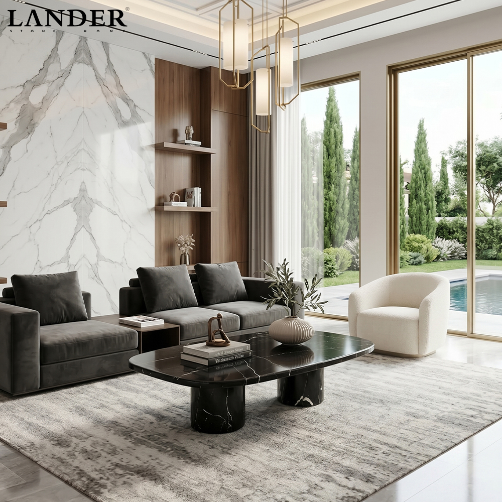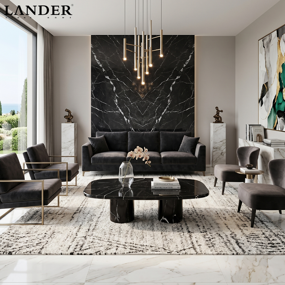 • Bold Visual Impact: The deep black marble with dramatic white veining adds a luxurious, high-contrast focal point to any interior.