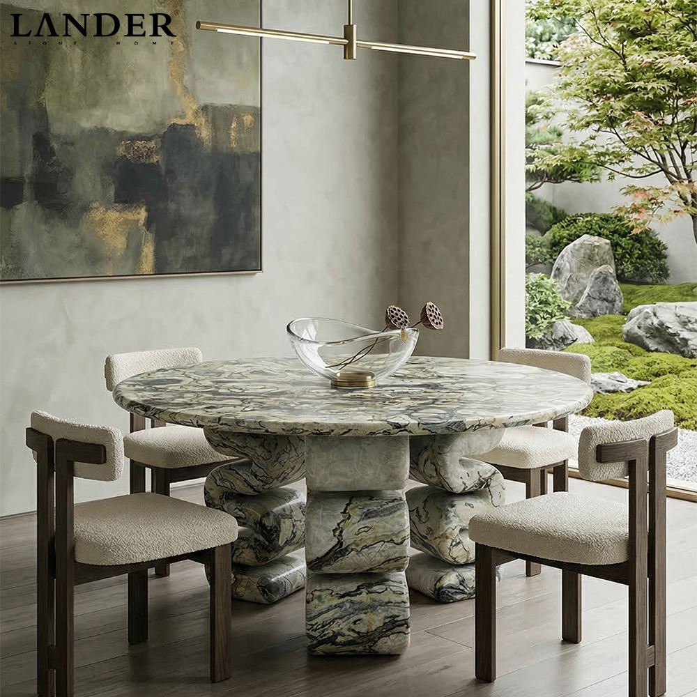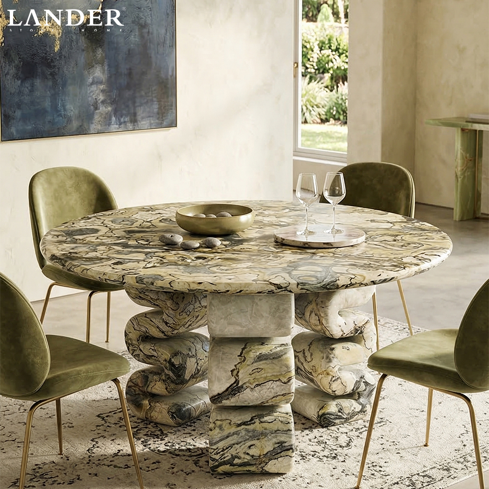 • Sturdy & Durable: Thick, hand-polished marble with sculptural pedestal legs offers excellent stability and natural heat resistance for daily dining.