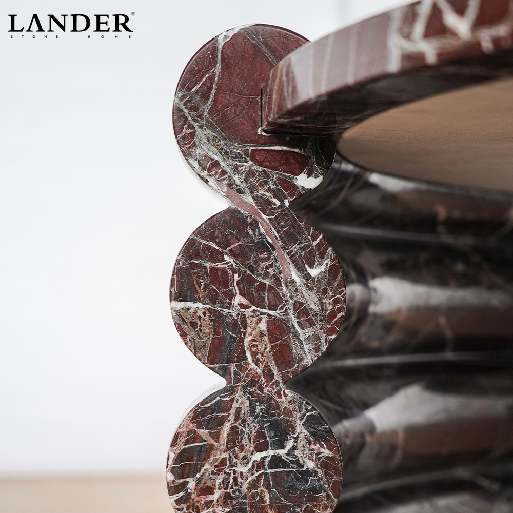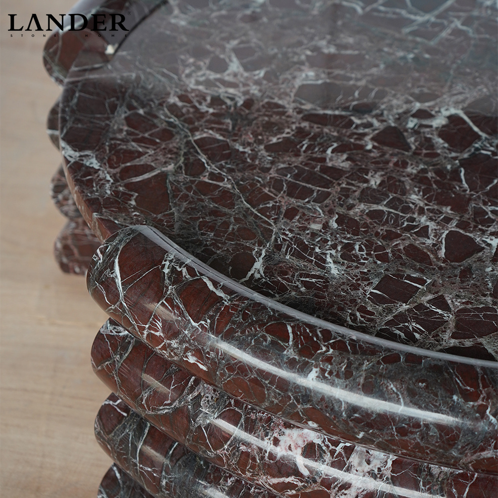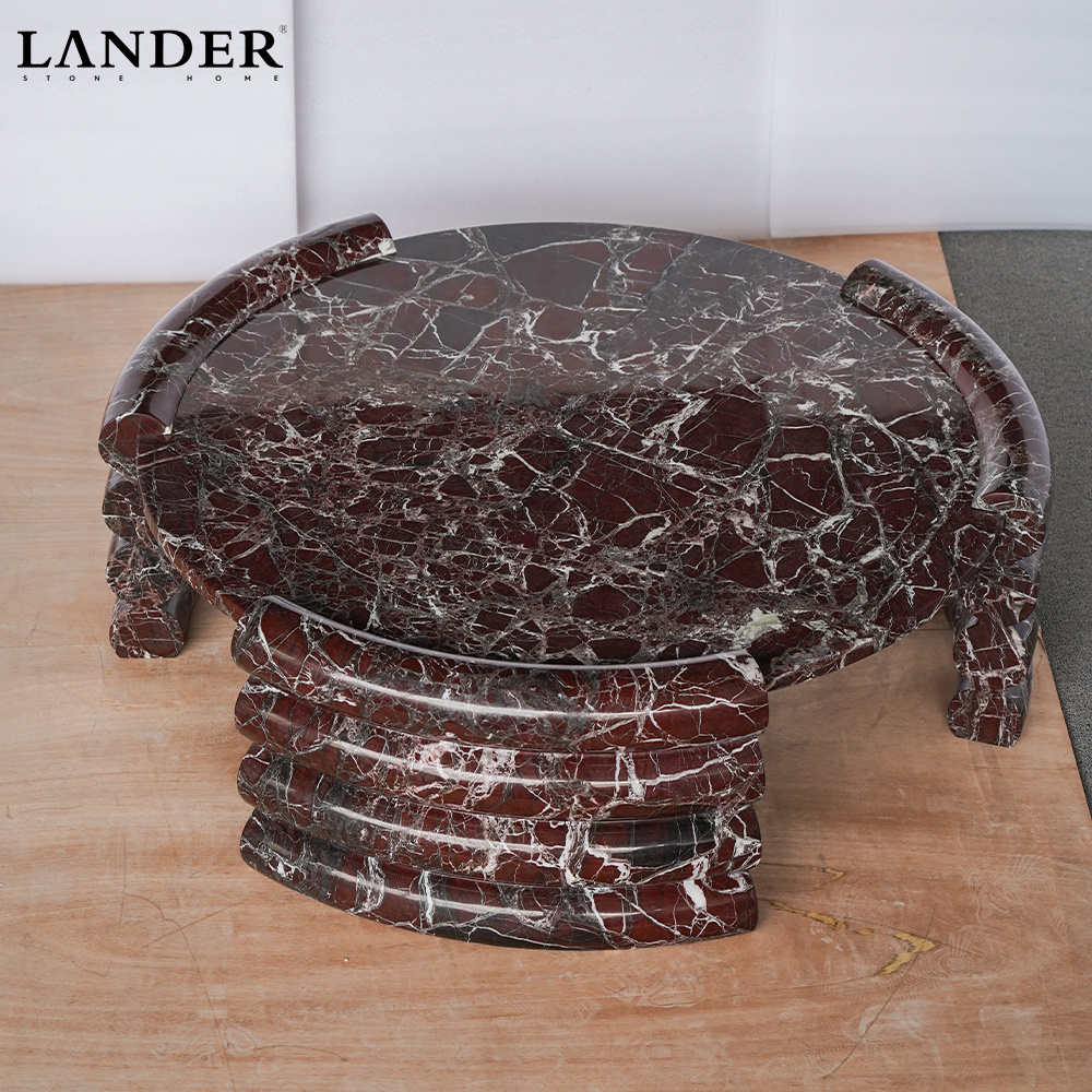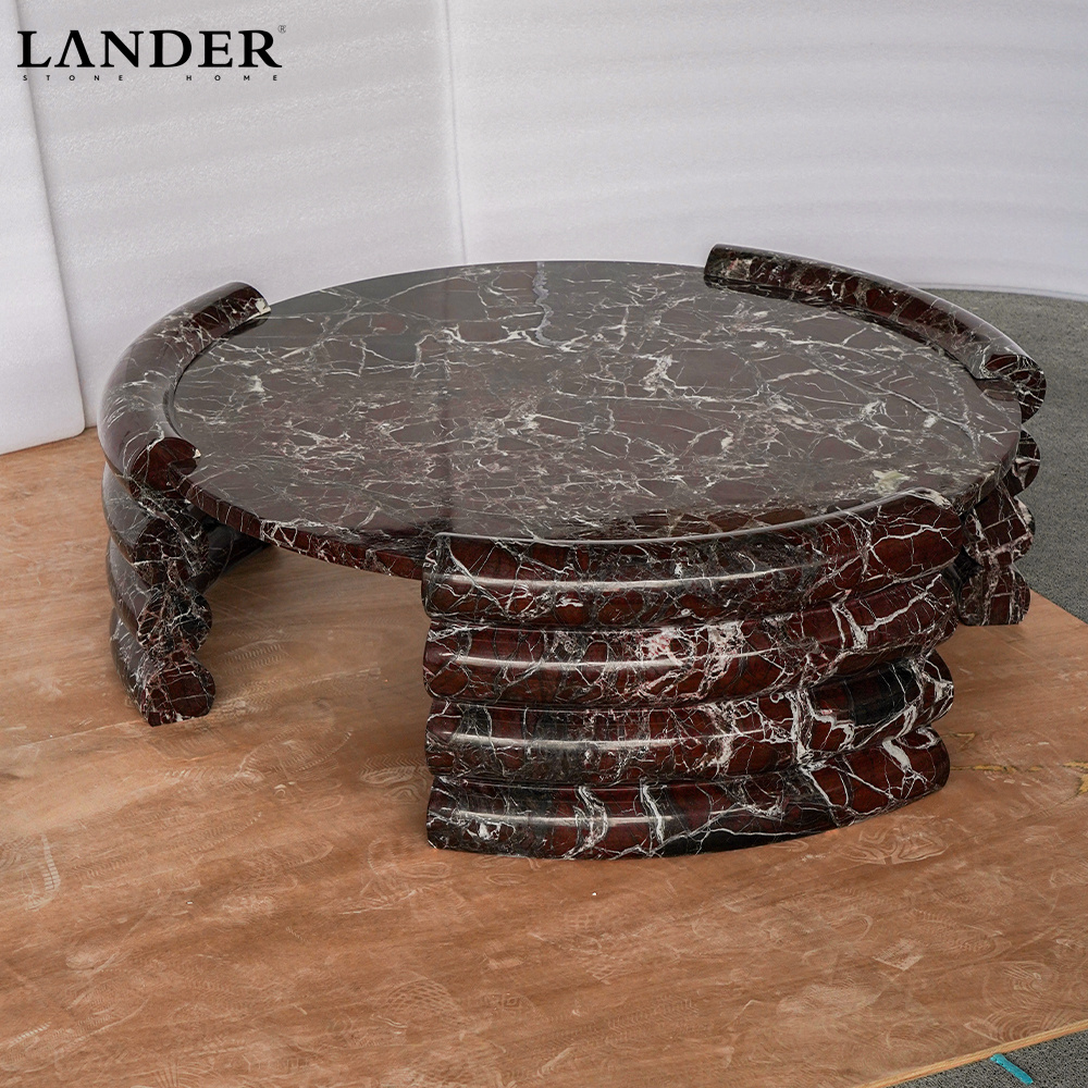 The Rosa Levanto Round Marble Coffee Table showcases rich wine-red hues and crisp white veining, crafted from genuine Rosa Levanto stone and honed to a smooth, tactile finish. Its balanced circular silhouette offers a low, sculptural presence that anchors living spaces with understated luxury. Naturally dense and heat-resistant, the solid marble top provides durable everyday function, while each table’s unique patterning ensures a one-of-a-kind centerpiece for modern, eclectic, or classic interiors.