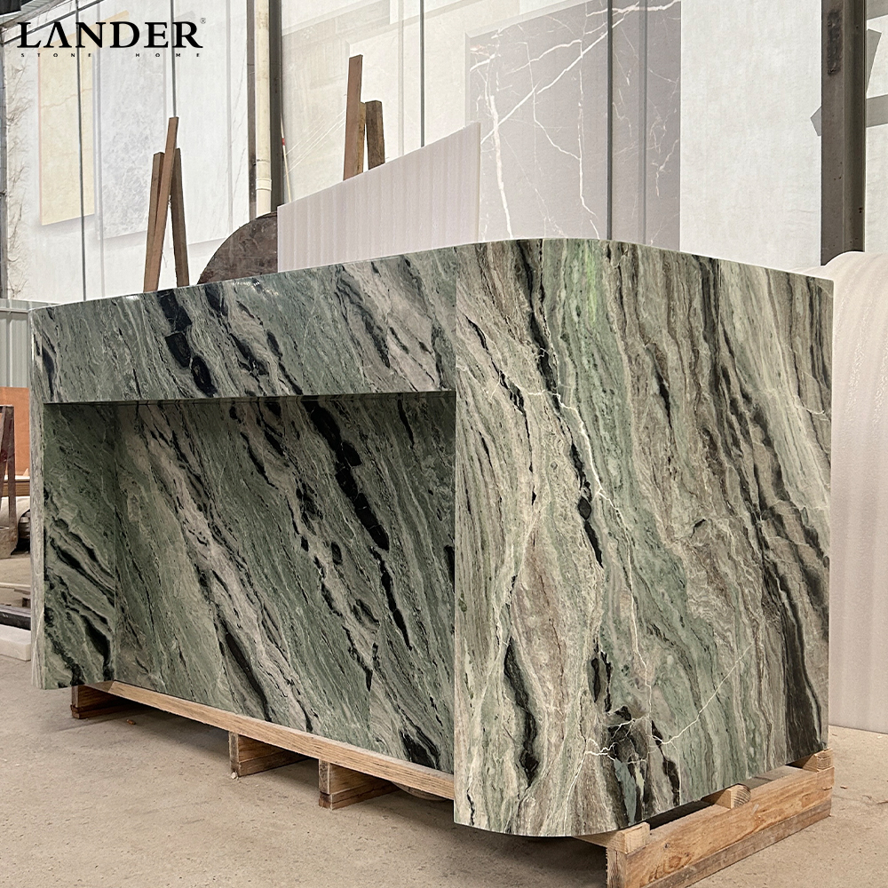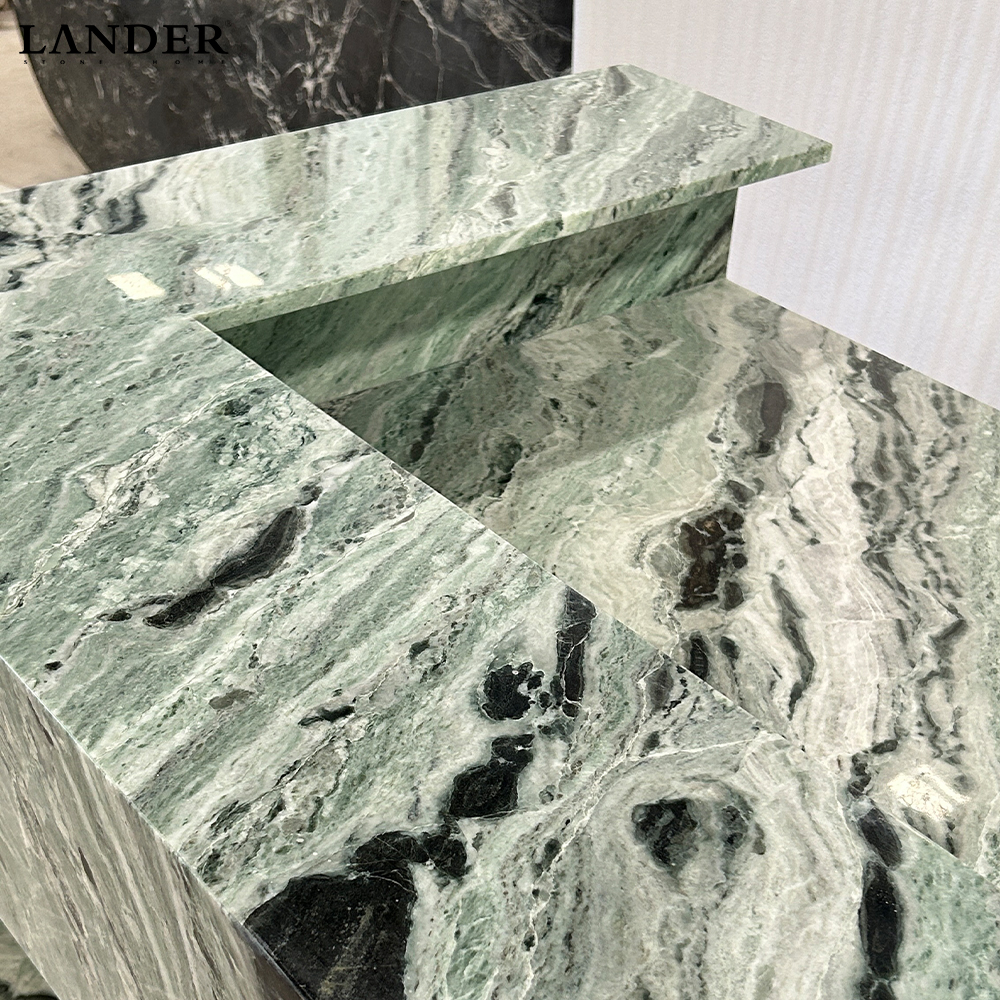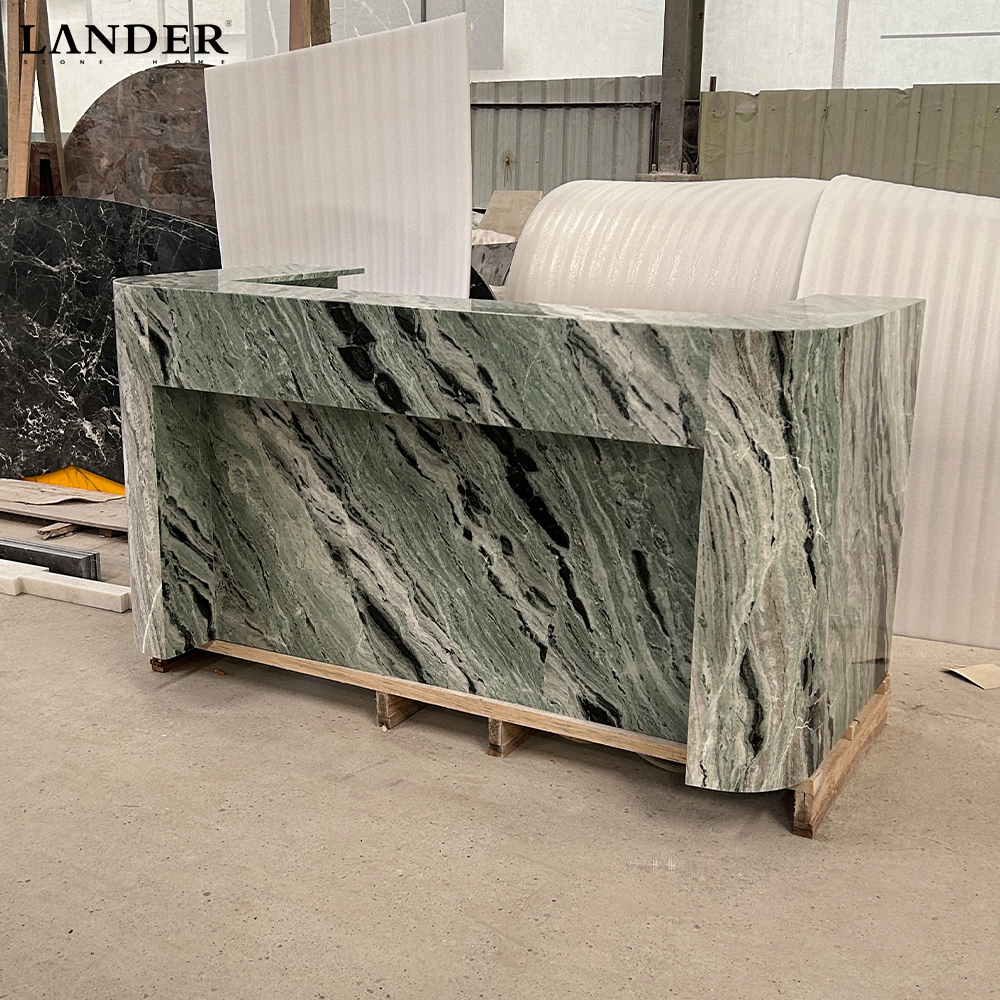 • Exotic Shangrila Green Marble: Features a rare and mesmerizing palette of multi-tonal greens and dynamic veining, ensuring your reception area boasts a unique, natural masterpiece.