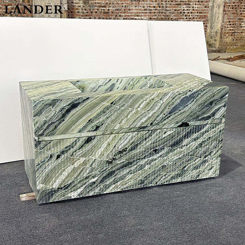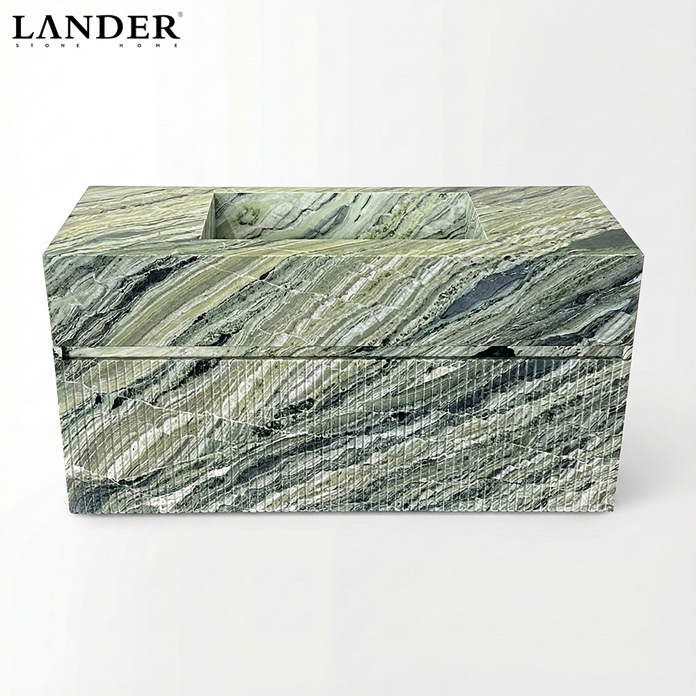 Precision Fluted Artistry: Features a meticulously milled ribbed texture on the lower facade, adding tactile interest and a modern architectural rhythm to the solid stone form.