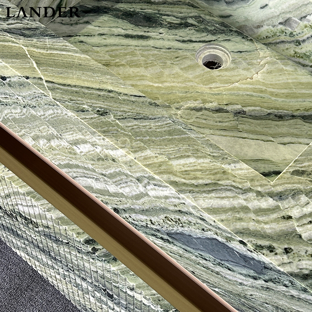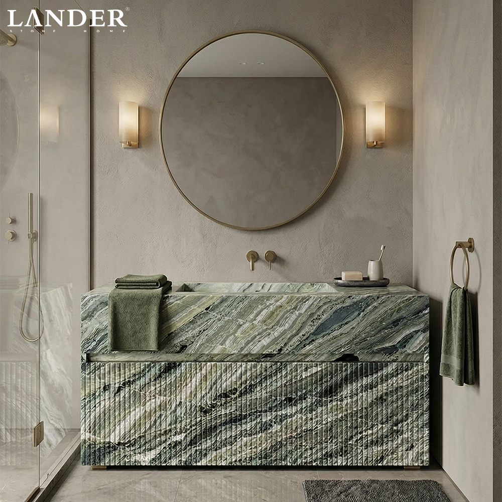 Exotic Shangrila Palette: Showcases a rare and dramatic color story of deep greens and golden earth tones, ensuring that every vanity is a one-of-a-kind natural masterpiece.