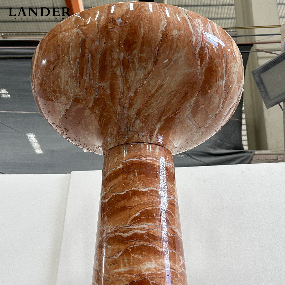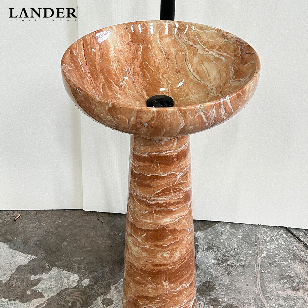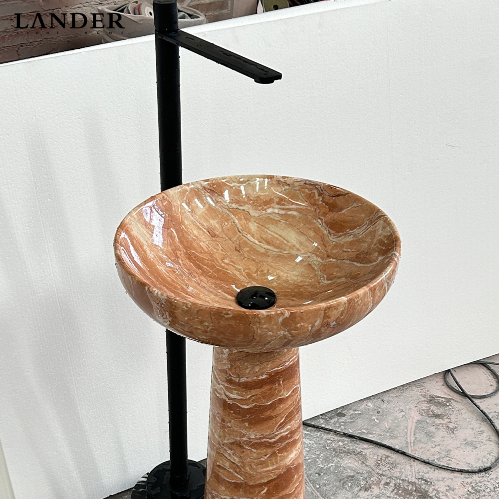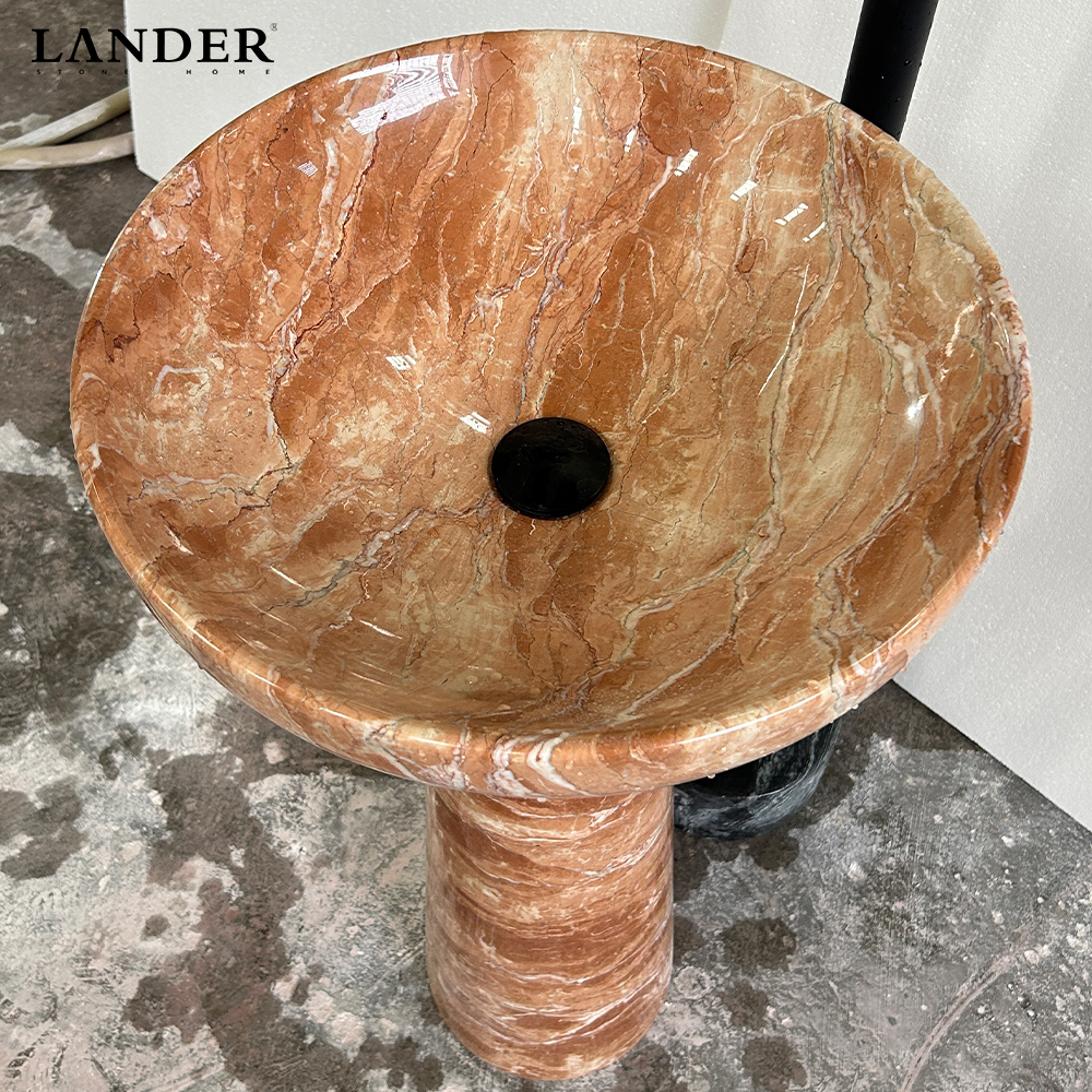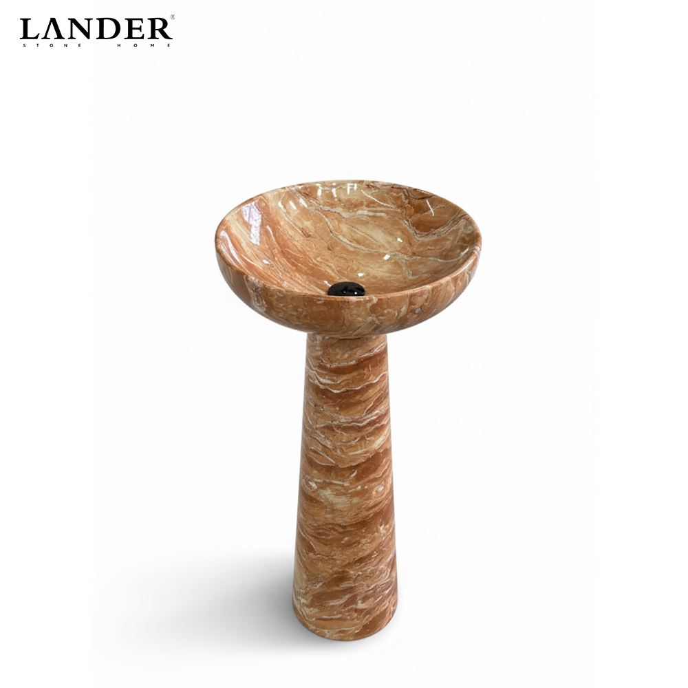 The Tea Rose Marble Sink features the soft, delicate hues of tea rose marble, with its unique veining creating an elegant and serene atmosphere. The smooth, polished surface not only enhances the beauty of your bathroom but also offers a durable and easy-to-maintain finish. The sink’s sleek, modern design is complemented by its sculptural pedestal, making it a perfect blend of art and function. Ideal for contemporary and traditional settings, this sink brings a touch of luxury and sophistication to any space.