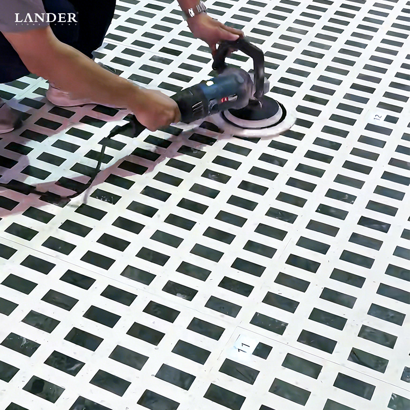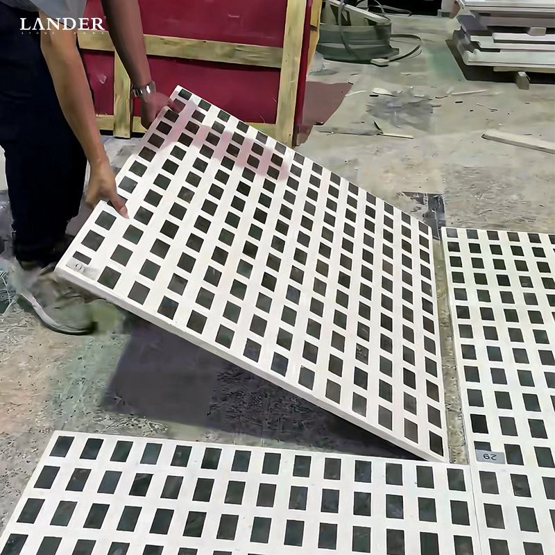 Modern Grid Layout: Precision-aligned rectangular inlays create a clean, organized, and sophisticated visual rhythm.