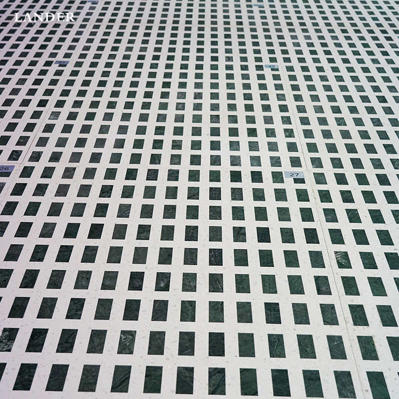 The Terrazzo and Verde Guatemala Marble Parquet combines artisanal texture with vibrant natural beauty. This design features a sophisticated grid of deep, emerald-green Verde Guatemala marble rectangles set within a luminous, speckle-finished Terrazzo matrix. Precision-crafted for a flawless geometric layout, this flooring offers a modern, eco-chic aesthetic that is both durable and heat-resistant. Ideal for luxury boutiques, contemporary residential floors, and stylish commercial lobbies seeking a fresh, architectural statement.