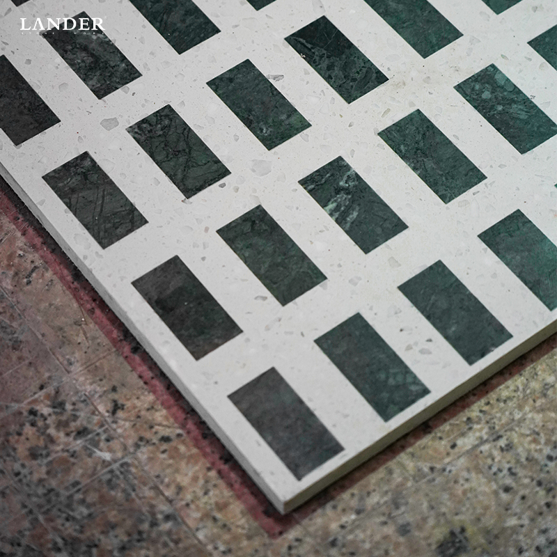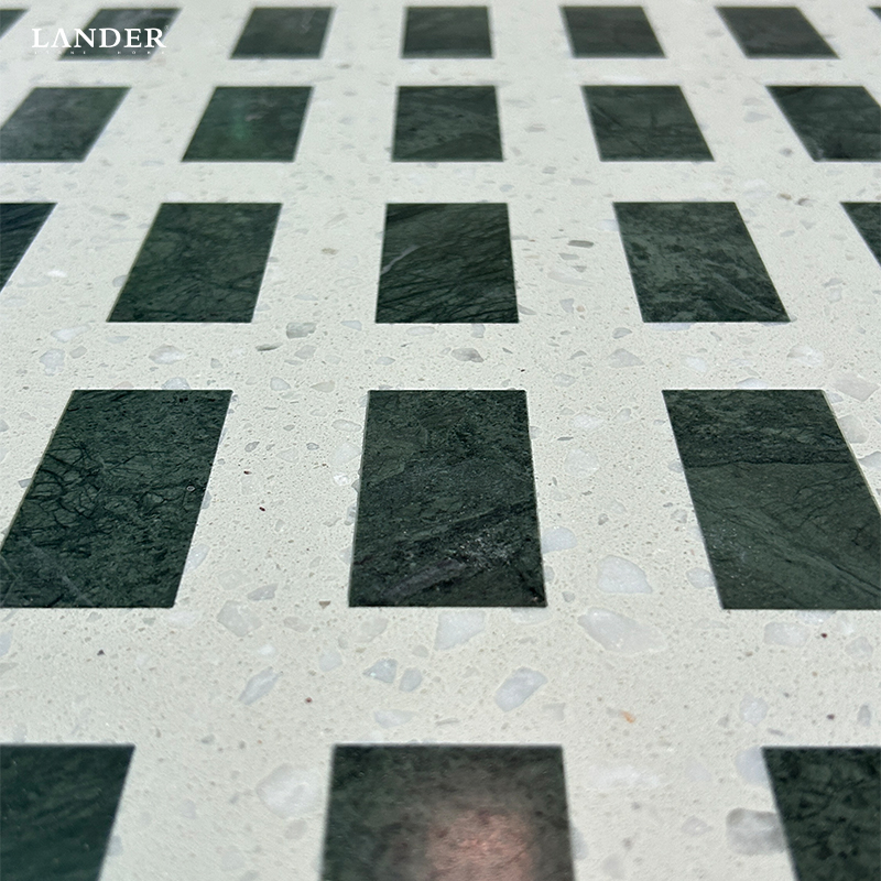 Artisanal Fusion: Blends the rich mineral depth of green marble with the trendy, textured look of premium Terrazzo.
