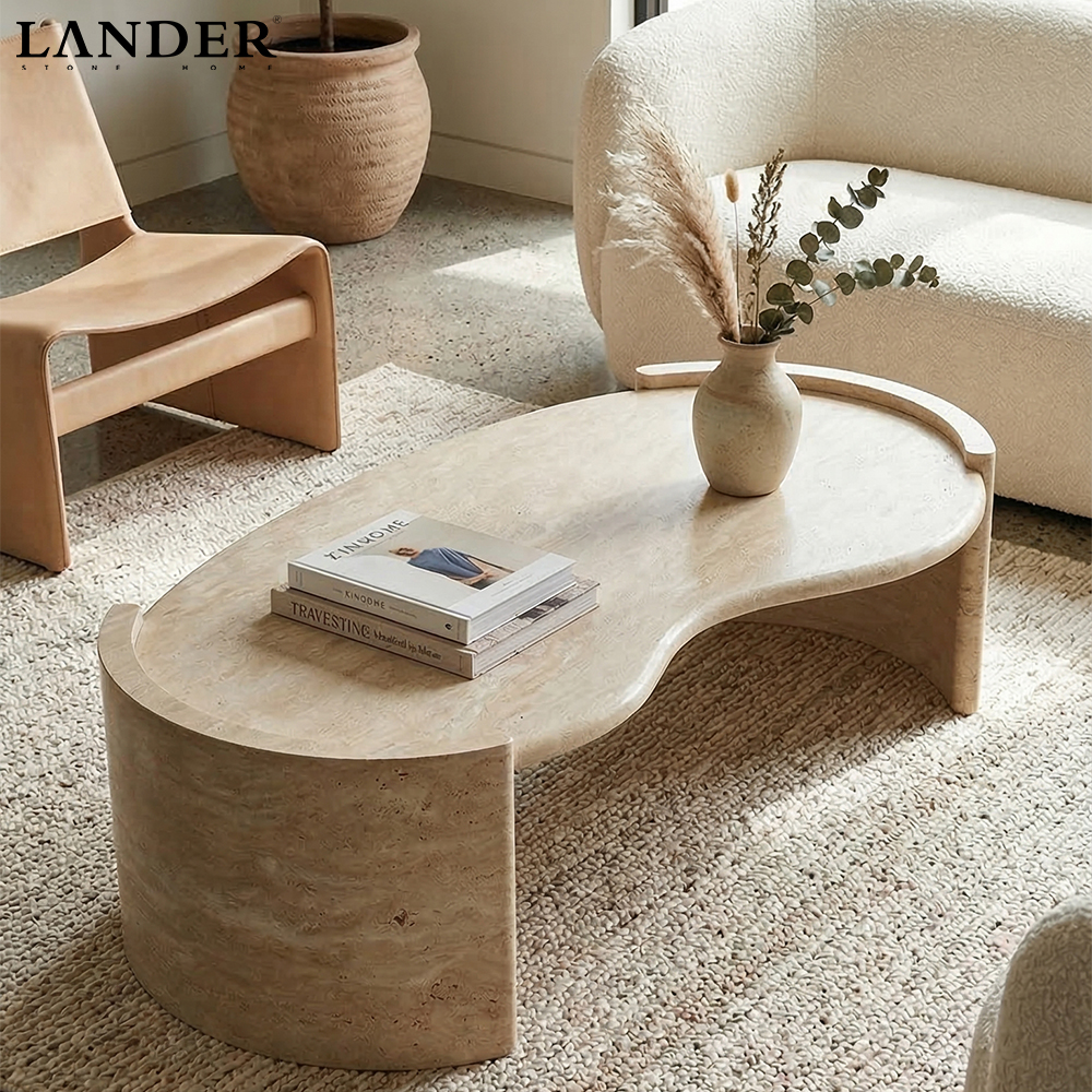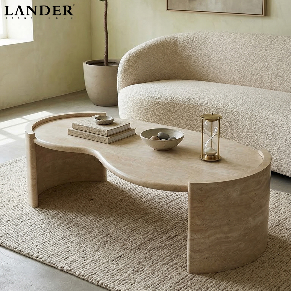 Travertine Marble Coffee Table with Cashew-shaped Desktop