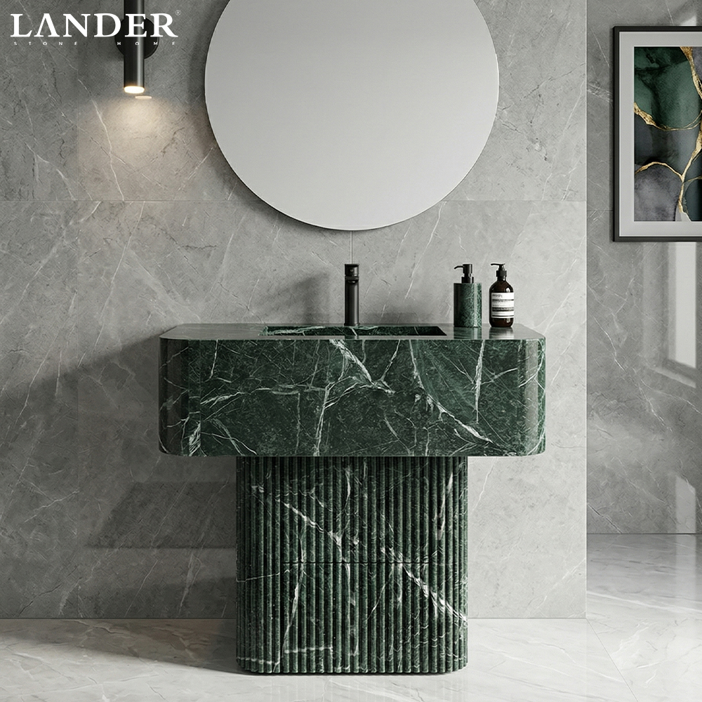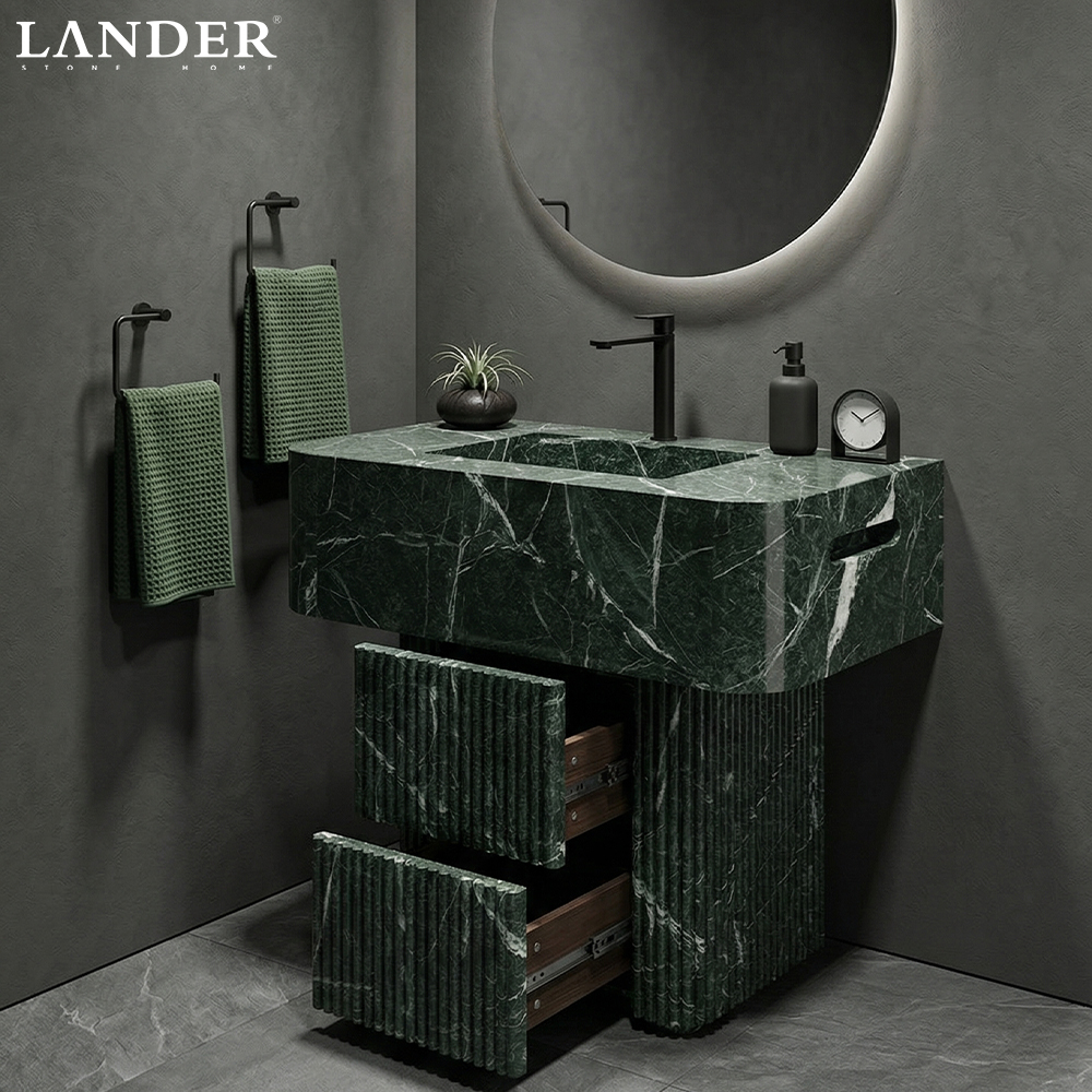 Verde Alpi Marble Vanity with Two Drawers