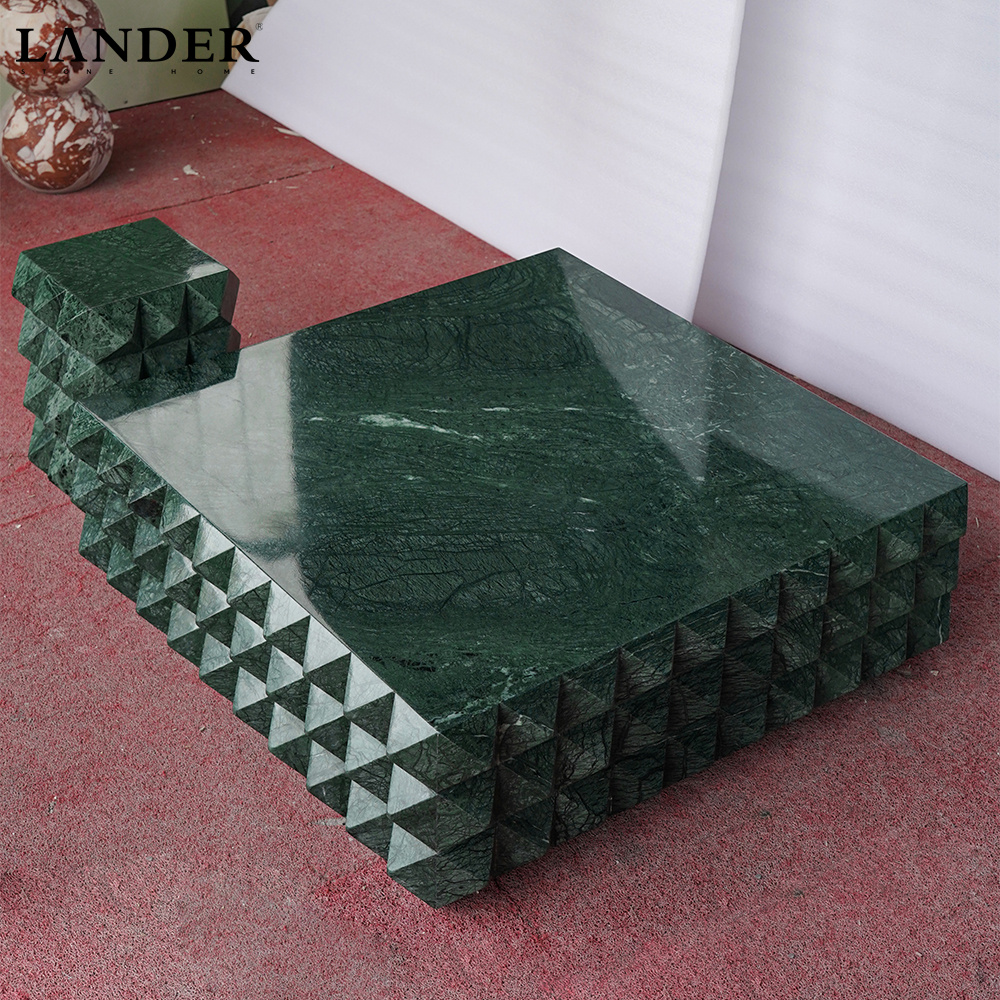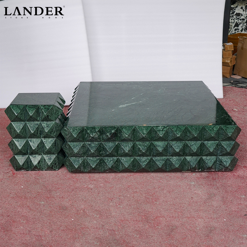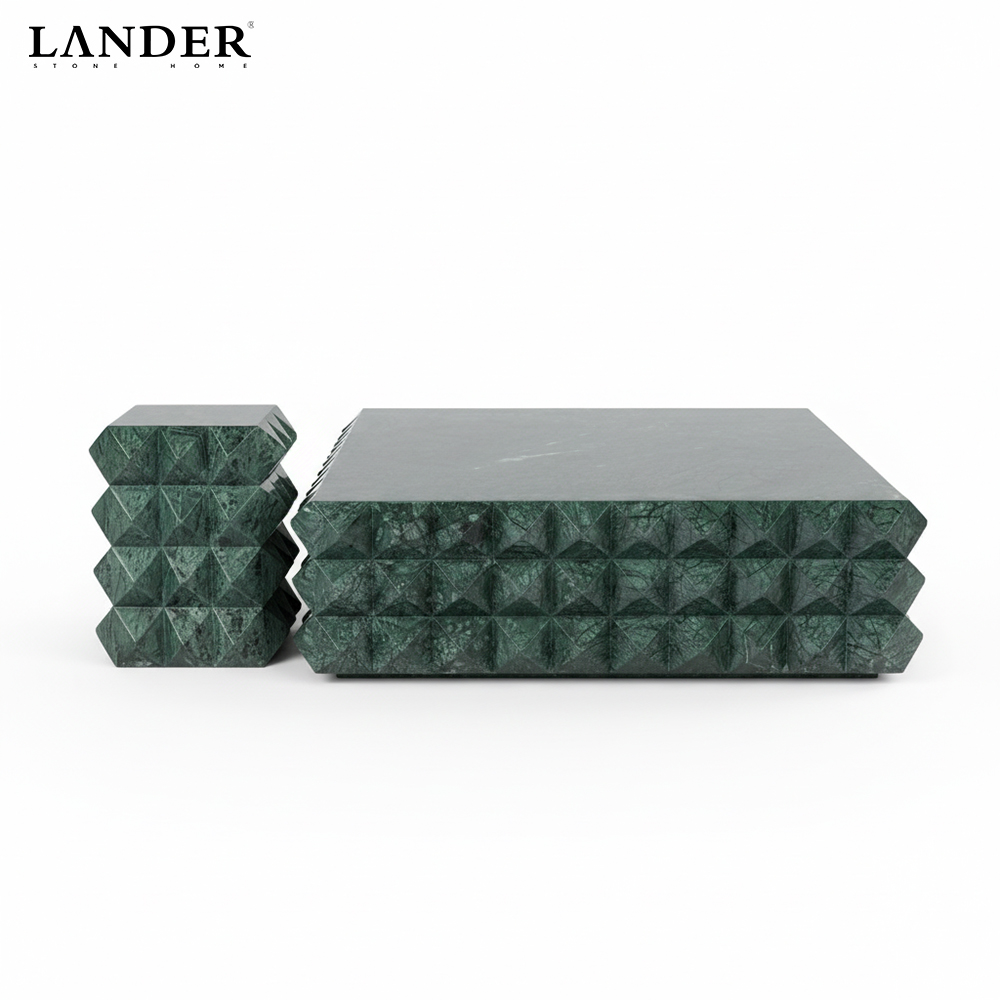 The Verde Guatemala Cube Marble Coffee Table distills bold color into a minimalist monolith, crafted from genuine Verde Guatemala marble with deep forest-green tones and delicate white veining. Hand-honed to a smooth, tactile finish, its solid cube silhouette brings sculptural presence and dependable stability to any seating area. Naturally dense and heat-resistant, the stone top is built for everyday living, while each table’s unique patterning ensures a one-of-a-kind centerpiece for modern, eclectic, or classic interiors.