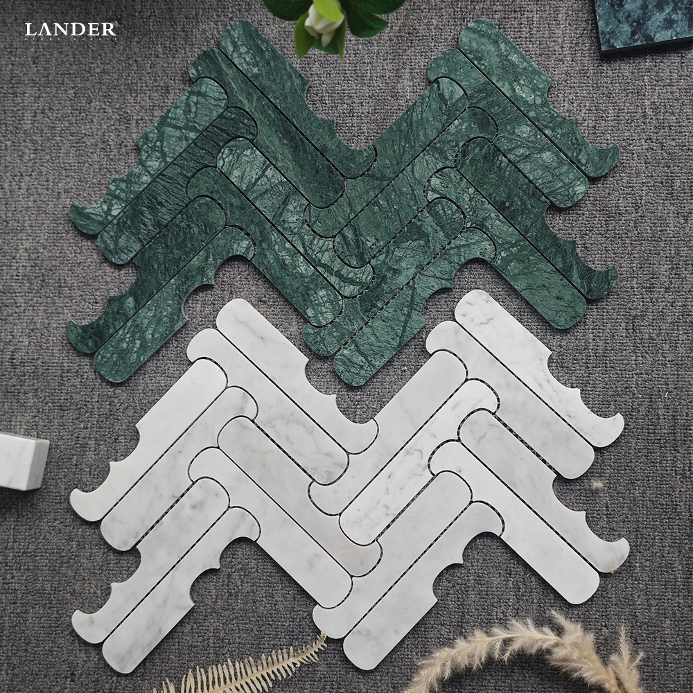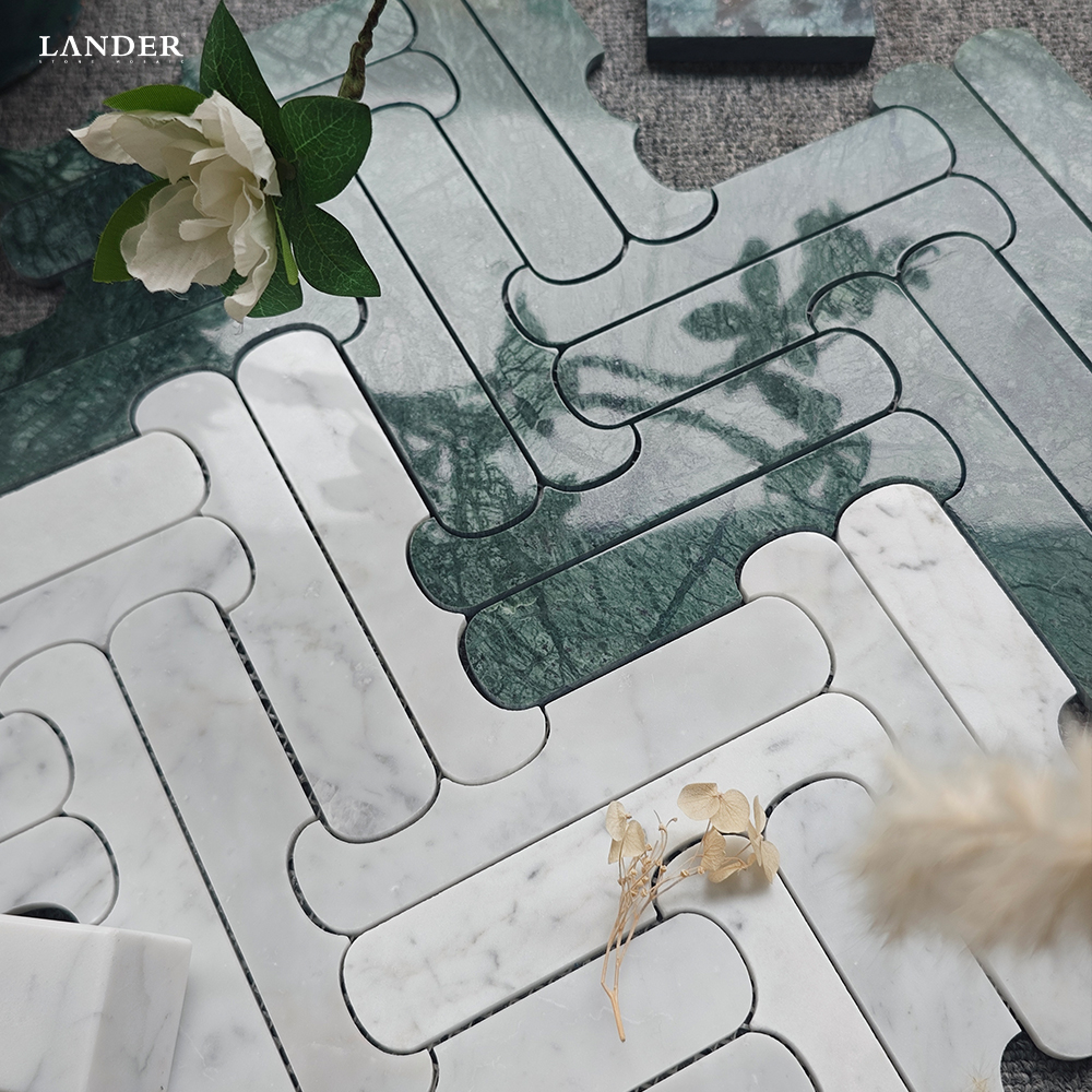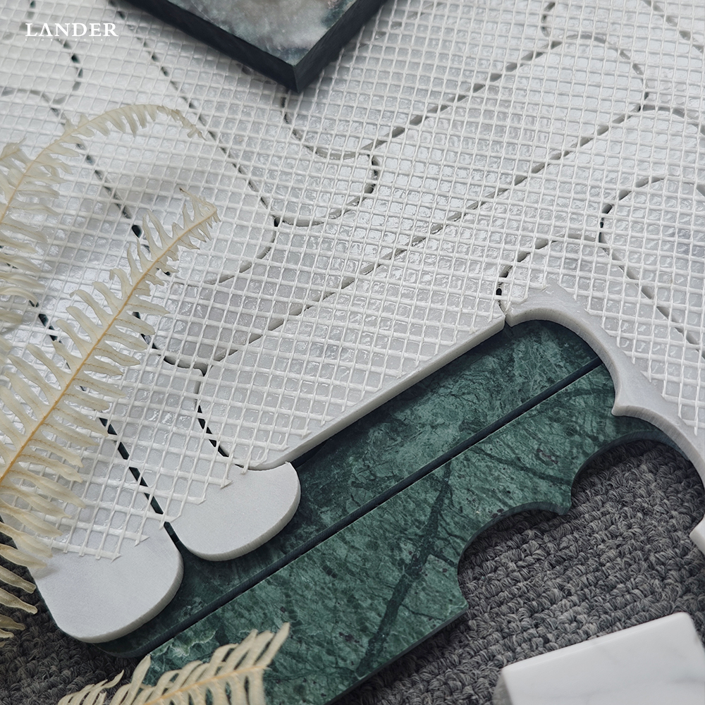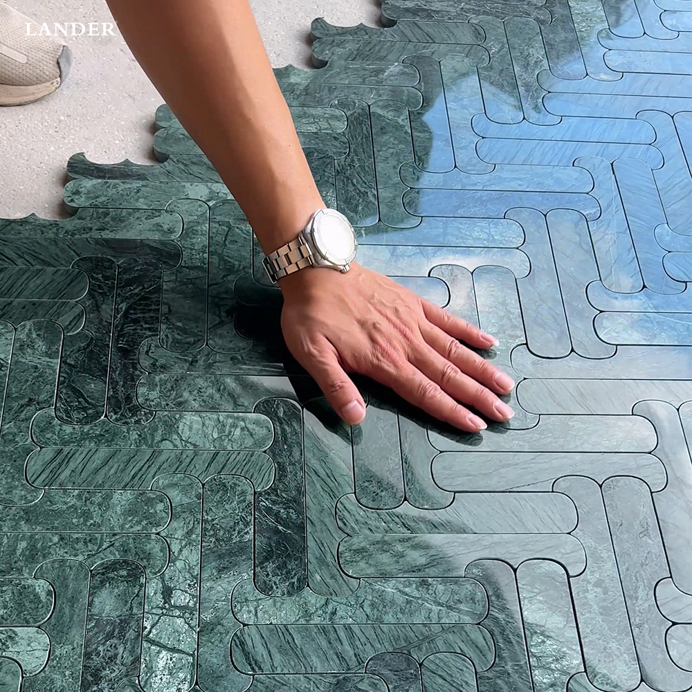 The Verde Guatemala Marble Mosaic Tile immediately enriches any space with the vibrant, luxurious tones of its namesake stone. This mosaic features rich, deep emerald-green hues and lively white veining, expertly cut into elegant shapes to create a seamless, striking pattern flow. Mounted on mesh for straightforward installation, these premium marble pieces deliver exceptional durability, high-end texture, and timeless luxury when properly sealed. Ideal for creating stunning statement walls, luxurious shower surrounds, and eye-catching backsplashes in high-end residential, spa, and boutique hospitality interiors.