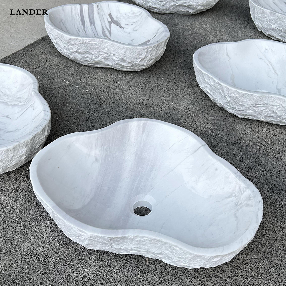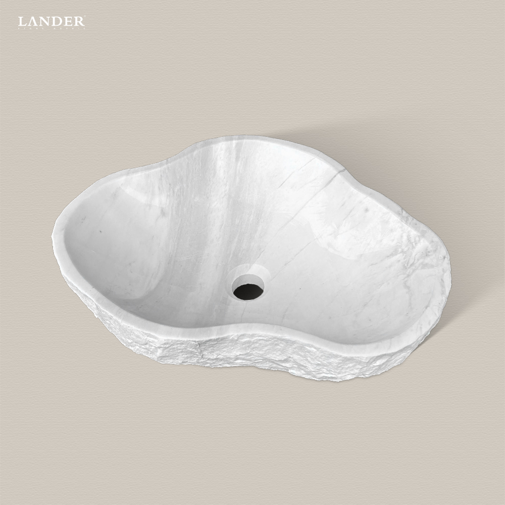 The Volakas Cloud Shaped Marble Wash Basin showcases a unique cloud-inspired design, beautifully crafted from premium Volakas marble. Its elegant curves and natural veining bring a touch of luxury and sophistication to any modern bathroom setting.